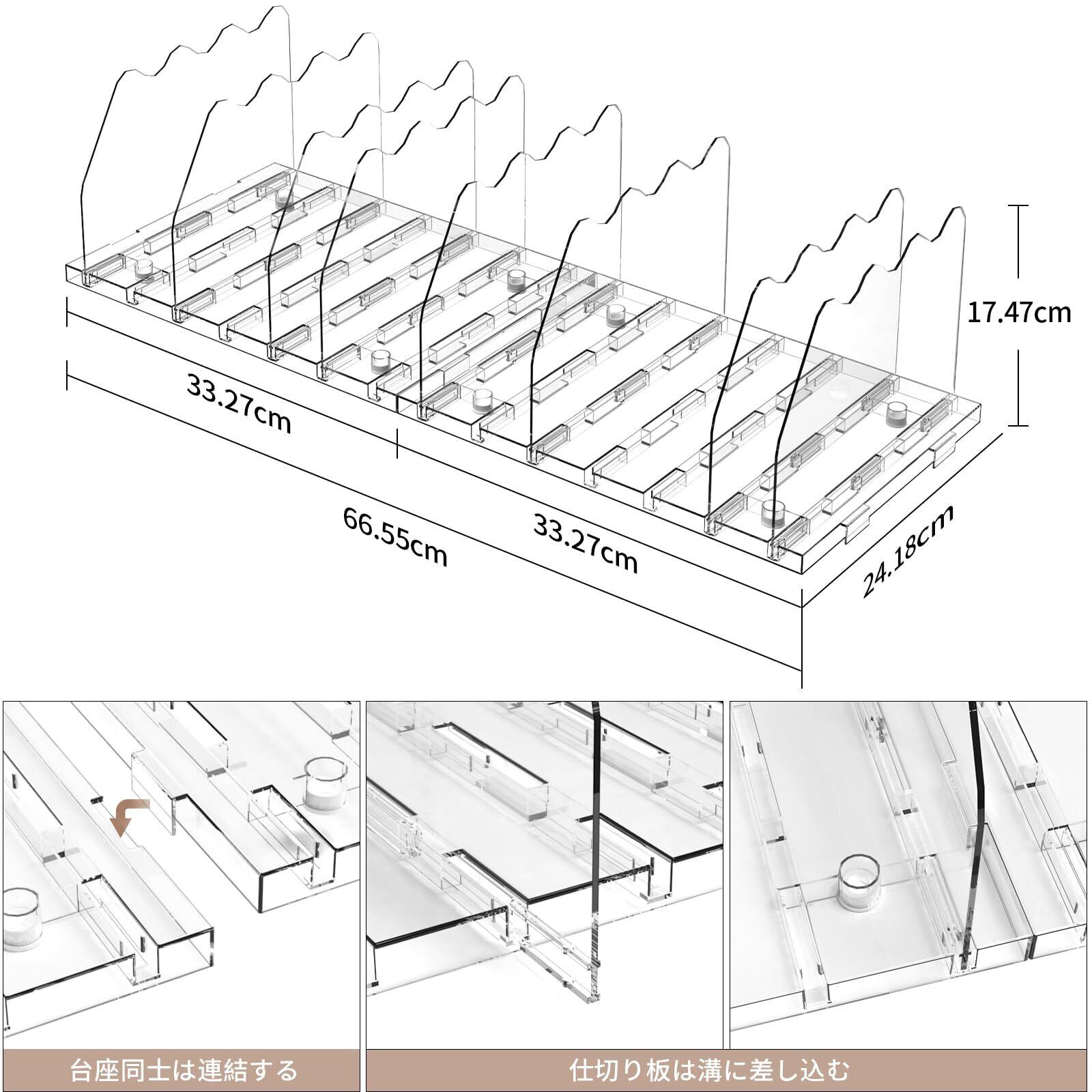 【商品仕様】約W33.27×D24.18×H17.48cm (1台)、約W66.55×D24.18×H17.48㎝ (2台連結時)。素材:ABS樹脂。