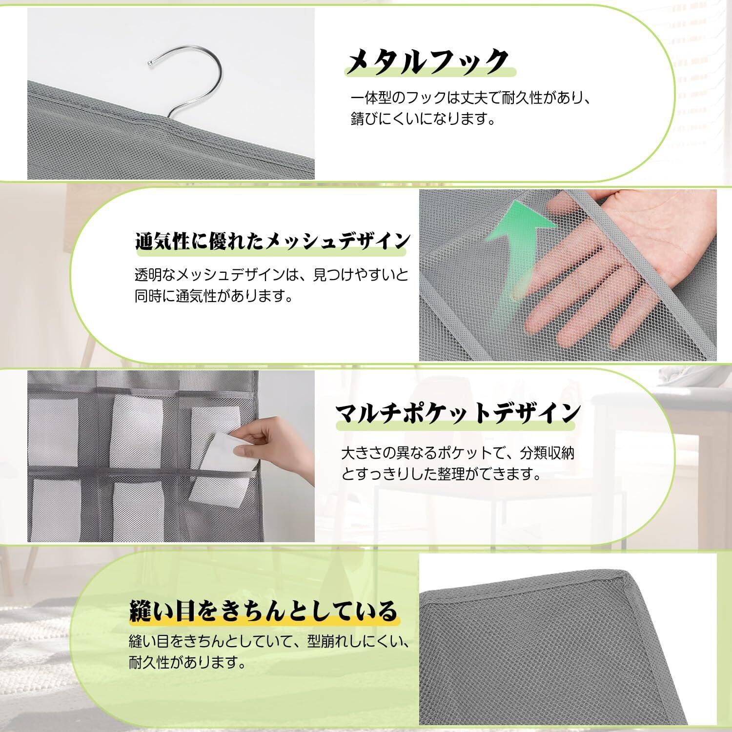 【2枚組】下着収納 ウォールポケット 吊り下げ収納 壁掛け収納 下着 収納 靴下 ブラジャー メッシュ 両面 壁掛け 収納バッグ 吊るせる収納 不織布(グレー)
