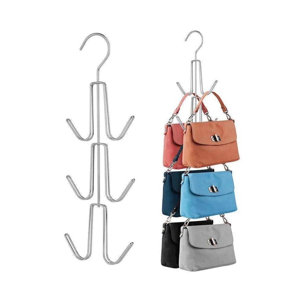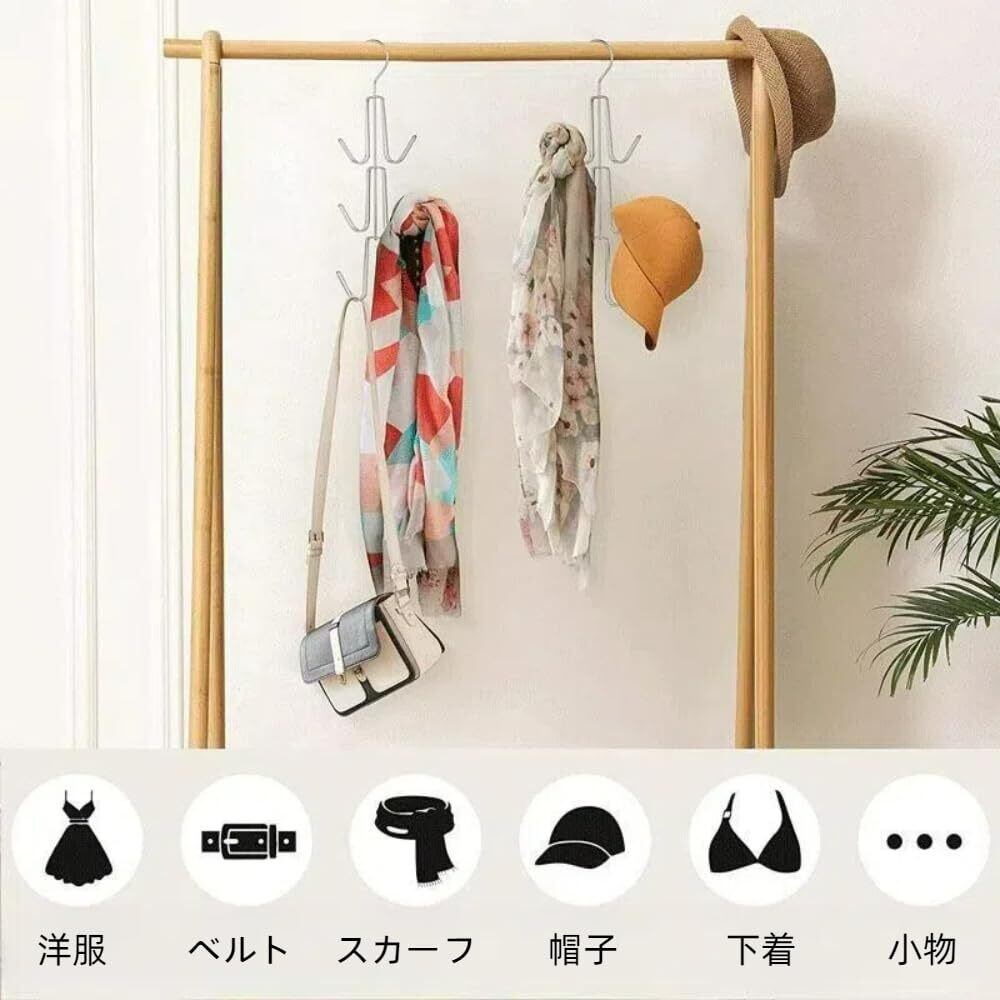 バッグ収納ラック 2個組 バッグ収納ハンガー 360度回転式 吊り下げ 金属制 バッグ掛け バッグホルダー 鞄 帽子 スカーフ キャミソール ネクタイ ベルト 小物 収納ハンガー 8つの収納力 (シルバー)
