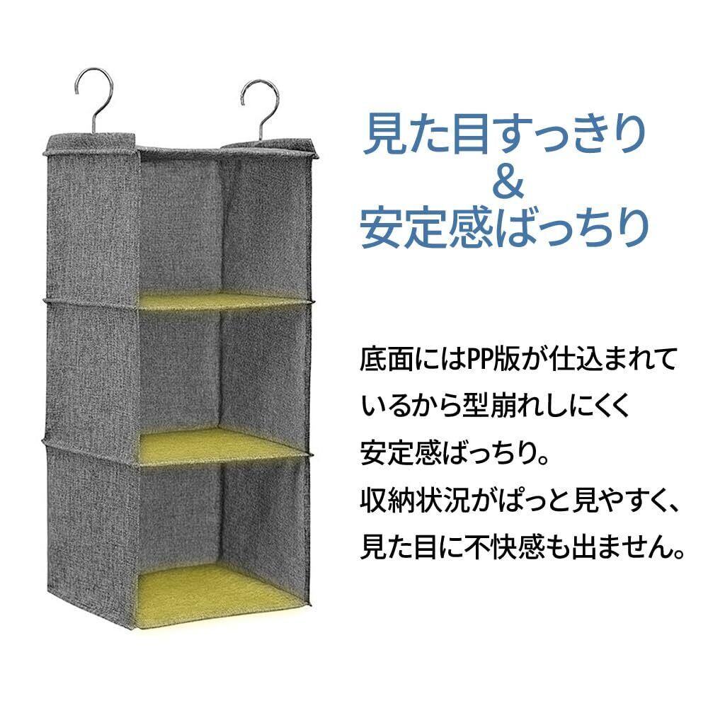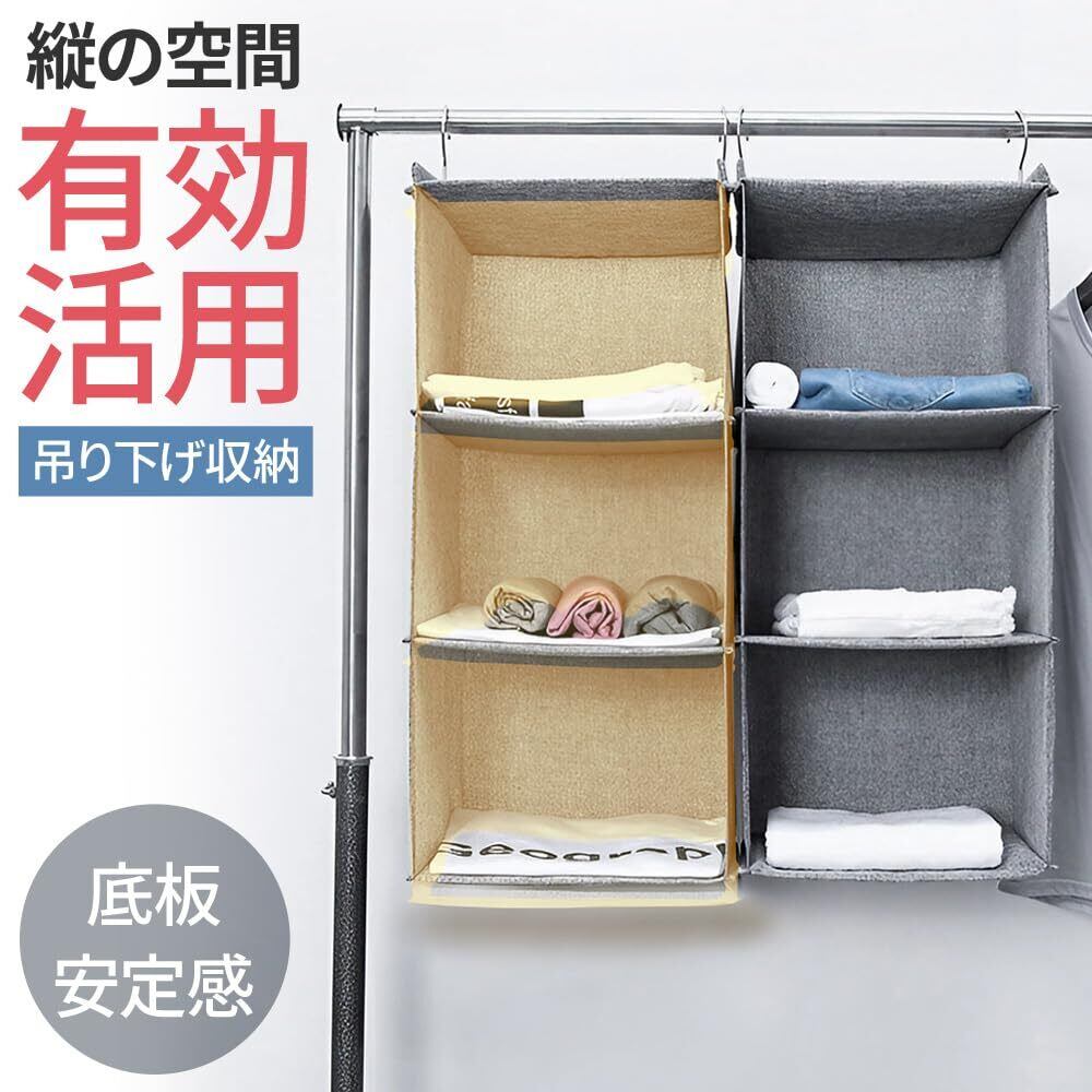 SUGGEST クローゼット 吊り下げ収納 3段 選べるカラー 折り畳み式 衣類ラック クローゼット 吊り下げ 衣類 小物 雑貨 (グレー)
