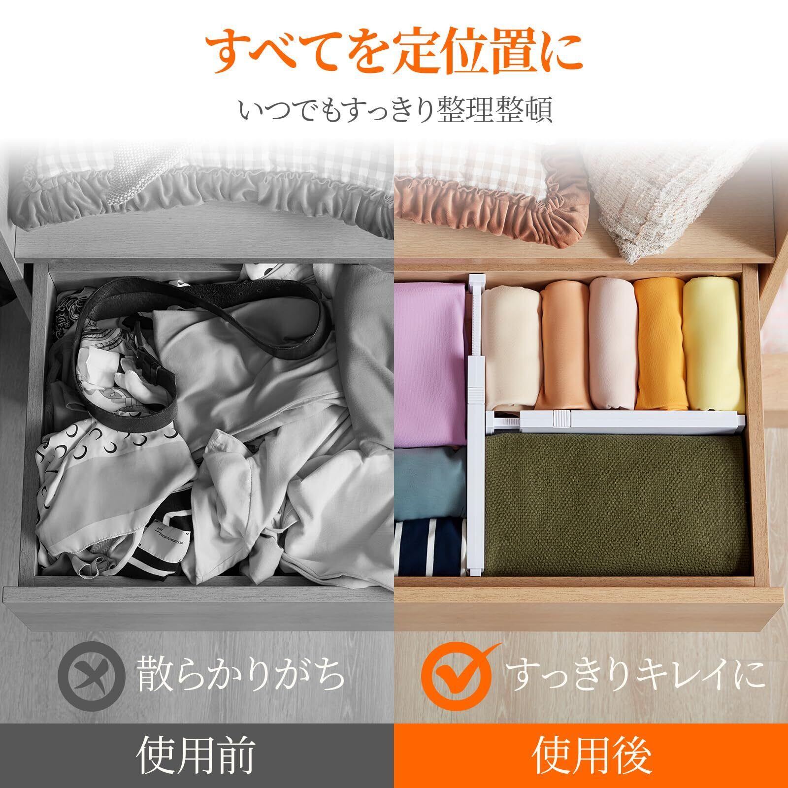 ✨【面倒な取り付けは不要で、引き出しにそのままセットするだけで即使用可能!】収納空間を有効に活用し、毎日の整理整頓を手助けします。