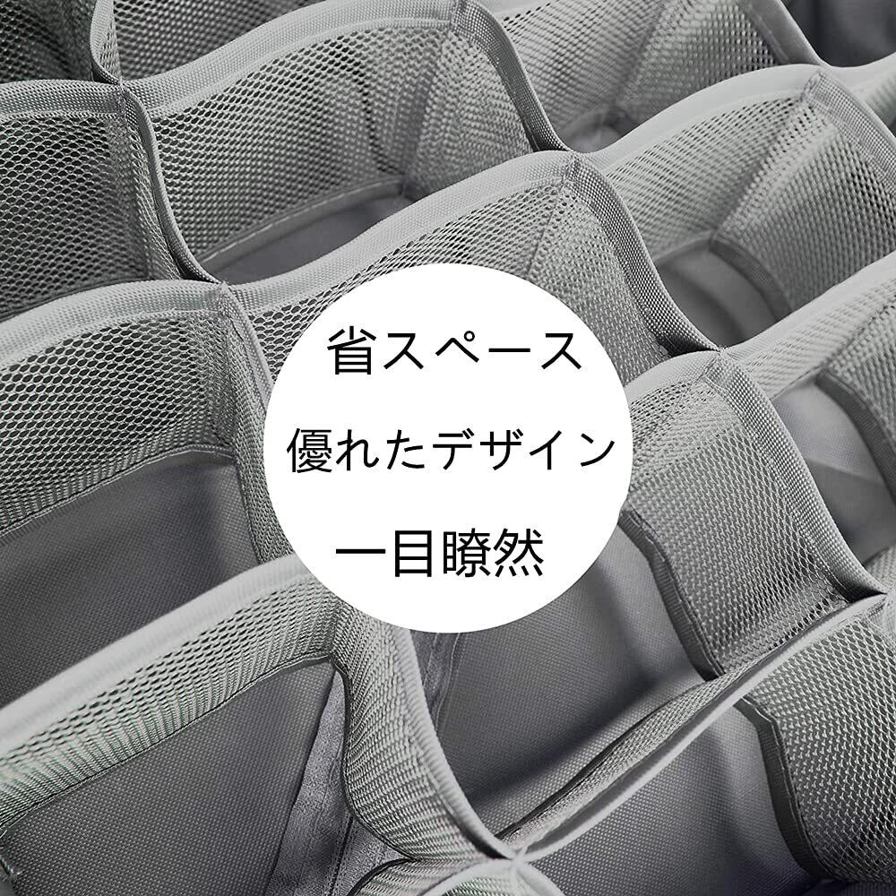 靴下収納ボックス 下着収納ボックス 折り畳み 24マス 引き出し仕切り オーガナイザー 収納ケース クローゼット 衣類 ソックス スカーフ ネクタイ 下着 靴下 小物収納 防塵 防湿 通気 省スペース 2点セット (グレー(2点セット))
