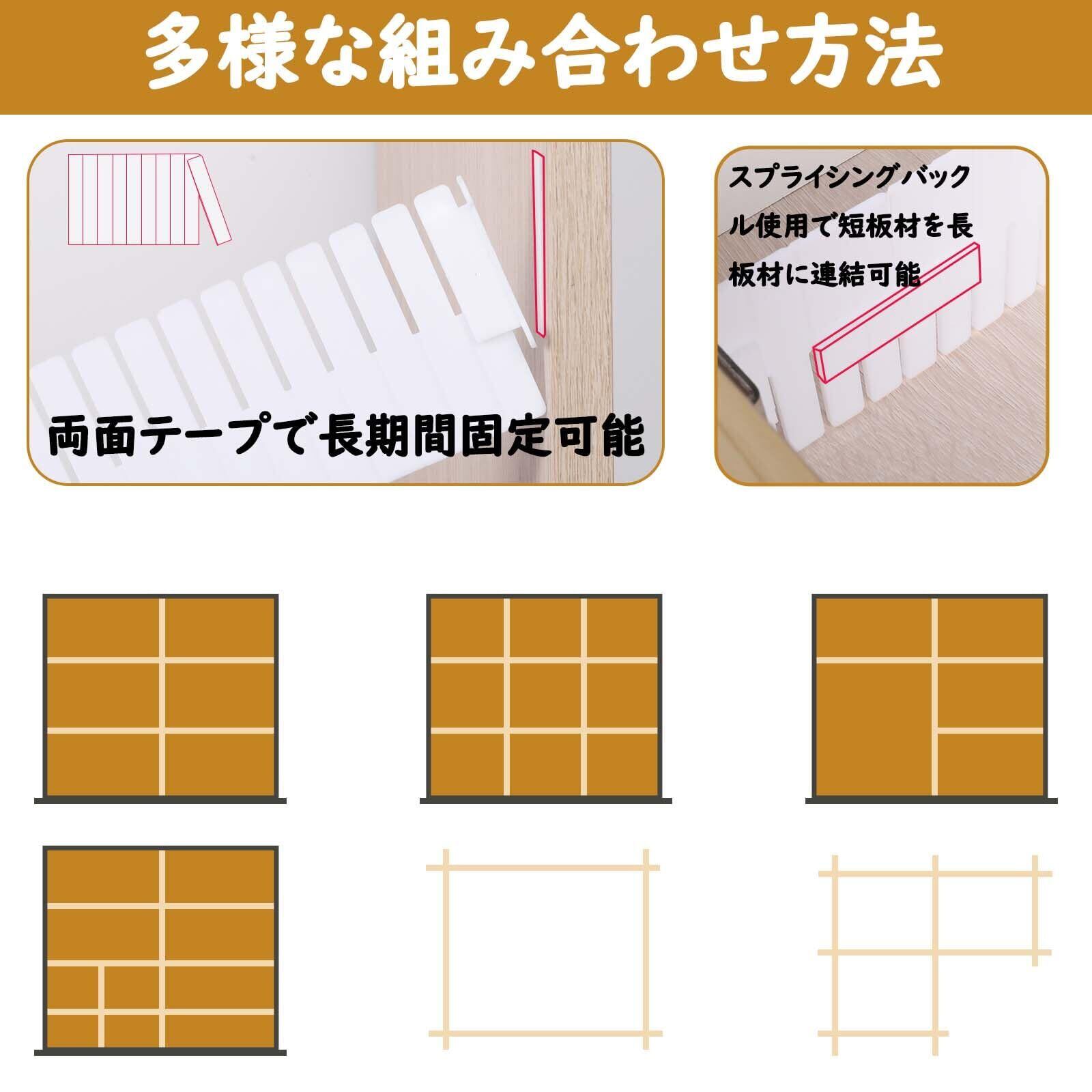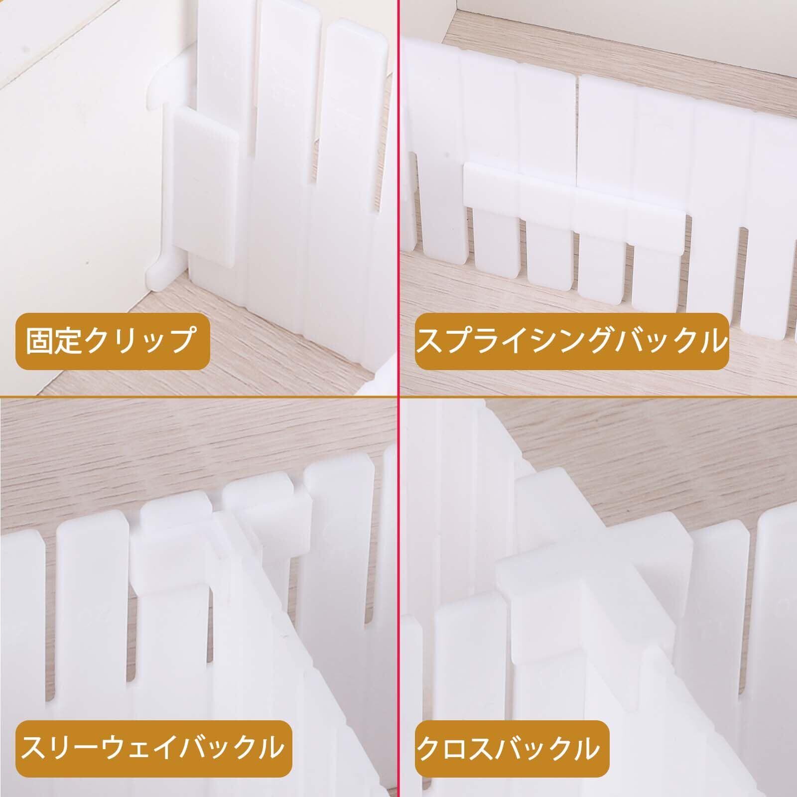 【プロ級固定アクセサリー】36個の4機能クリップ付属(固定クリップ20個、クロスバックル8個、スリーウェイバックル4個、スプライシングバックル4個)仕切り板の安定性を高めます。プラスチック製クリップは繰り返し使用可能、いつでもデザインを変更できます。長期固定が必要な場合は、付属の両面テープで取り付けることも可能です。