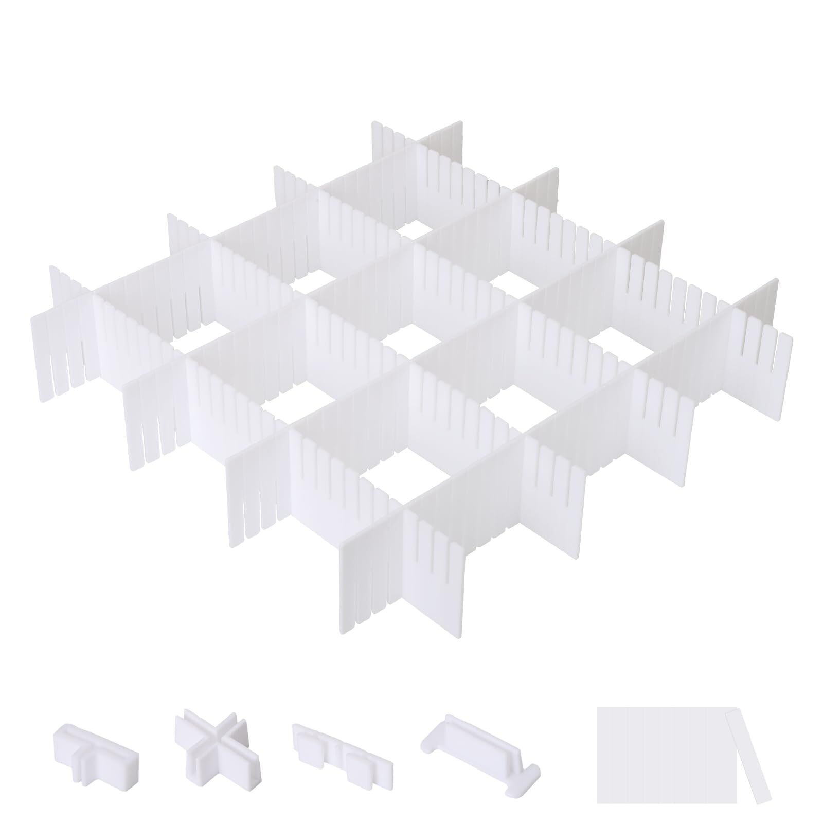 \【◆40.5x7cm 仕切り板 10枚 固定アクセサリー 36個付き お好きに切断 自由組合可能 引き出し 仕切り 安定性 高い 収納用 タンス 仕切り 小物 化粧品 下着 ネクタイ 薬品に最適(厚さ2.5mm ホワイト)】あなたの収納をもっとスマートにする必須アイテムです!/