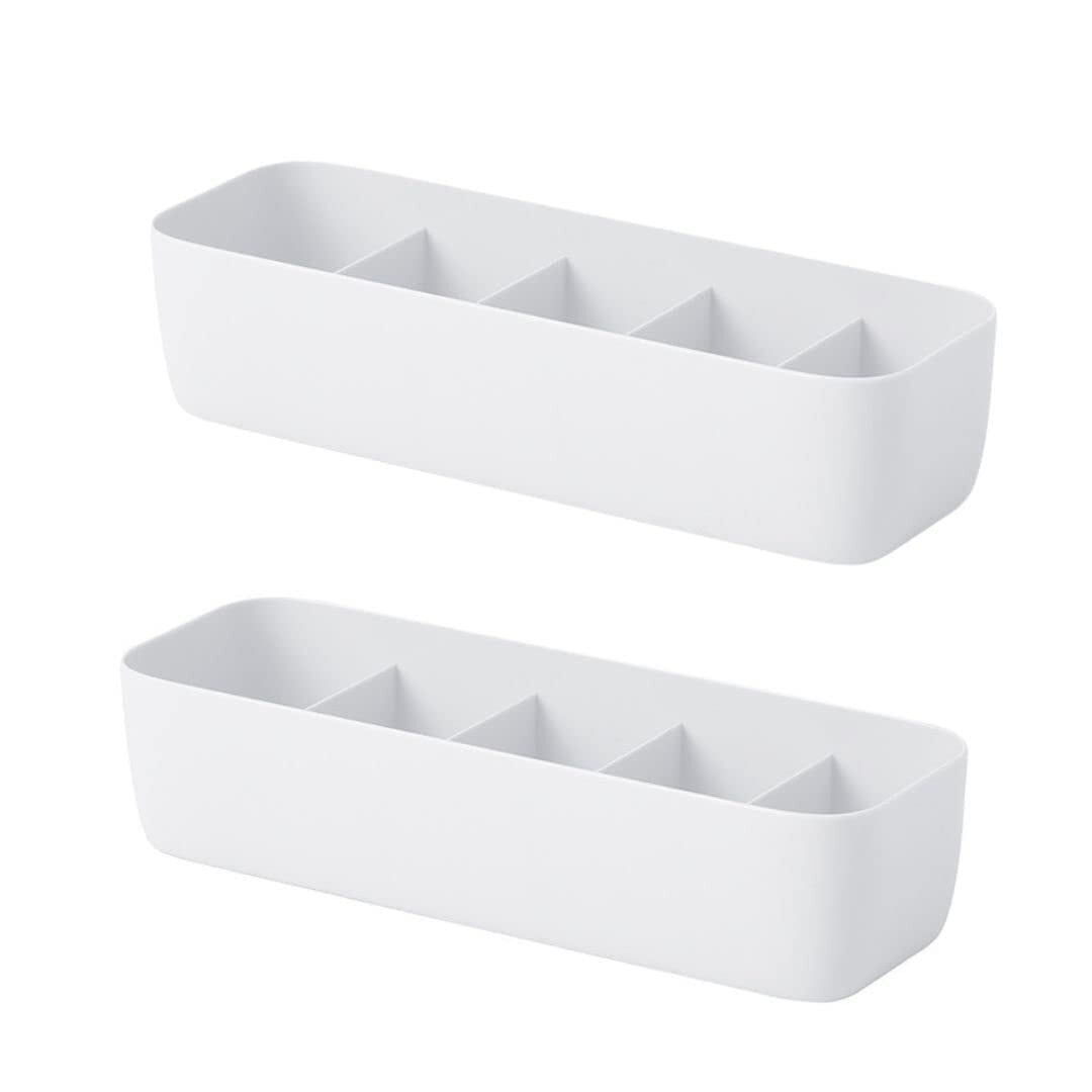 【5格の収納ボックス】収納ボックスに入れることで綺麗に片付けることができ引き出しに入れて使えば仕切りの役割をしてくれます。下着、ネクタイ、靴下、ハンカチなど生活に必要な物を収納することで見栄えも良くなります。5格ボックス2個セットで整理整頓が楽になること間違いなし。
