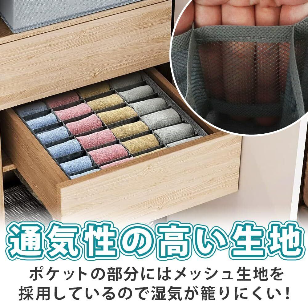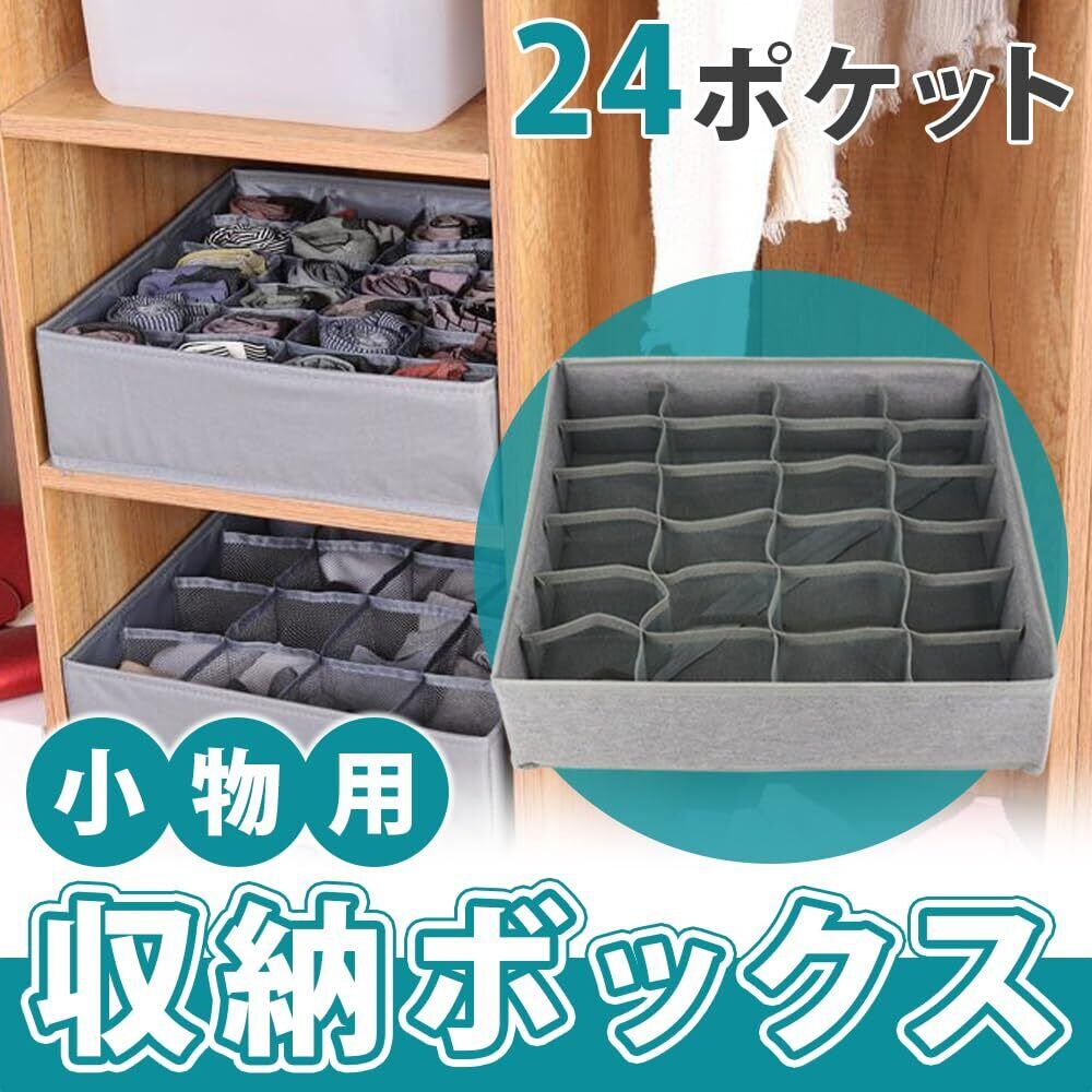 衣類用オーガナイザー 靴下&下着入れ 整理整頓 24マス 折り畳み キャビネット (グレー)