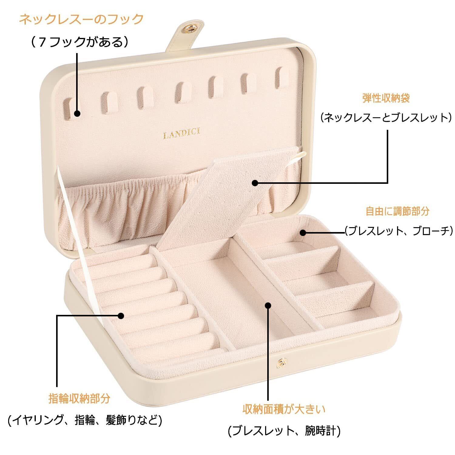 LANDICI ジュエリーボックス PUレザージュエリーケース ジュエリーボックス 指輪置きジュエリー収納ケース 携帯用 持ち運び 仕切り付き宝石箱 jewelry box organizer じゅえりーぼっくす ネックレス イヤリング ピアス ブレスレットなど小物入れアクセサリー ボックス 女性 女の子用 ベージュ