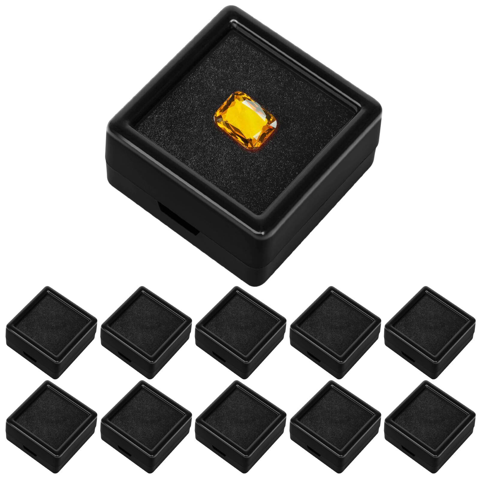 SENUN ルースケース 3cm 4cm 白 黒 クッション 10/20個セット 収納 小物入れ 窓付き 綺麗に見える ディスプレイ ルース ケース 裸石 宝石 天然石 鉱物 ジュエリー 小物 標本箱 宝石箱 コレクション 整理整頓 (ブラック, 3*3cm 10個セット)