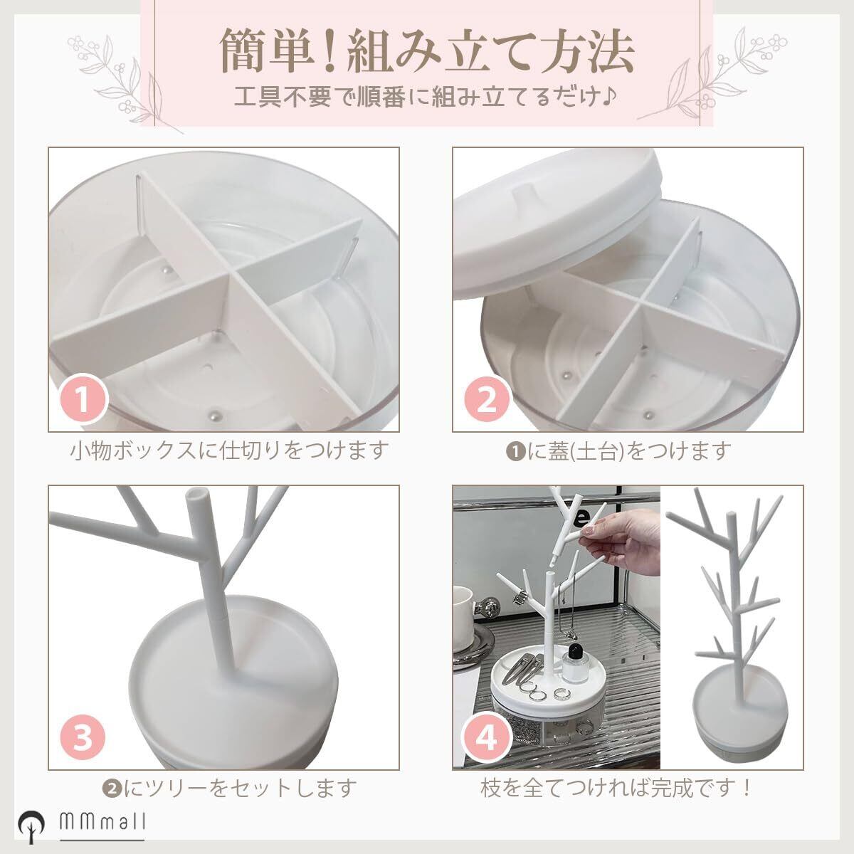 ✨【ツリー型の構造が、アクセサリーを個別に飾ることで、まるでアートのように魅力的に演出します!】ホワイトカラーがどんなインテリアにも調和し、部屋全体を明るく見せてくれることでしょう。