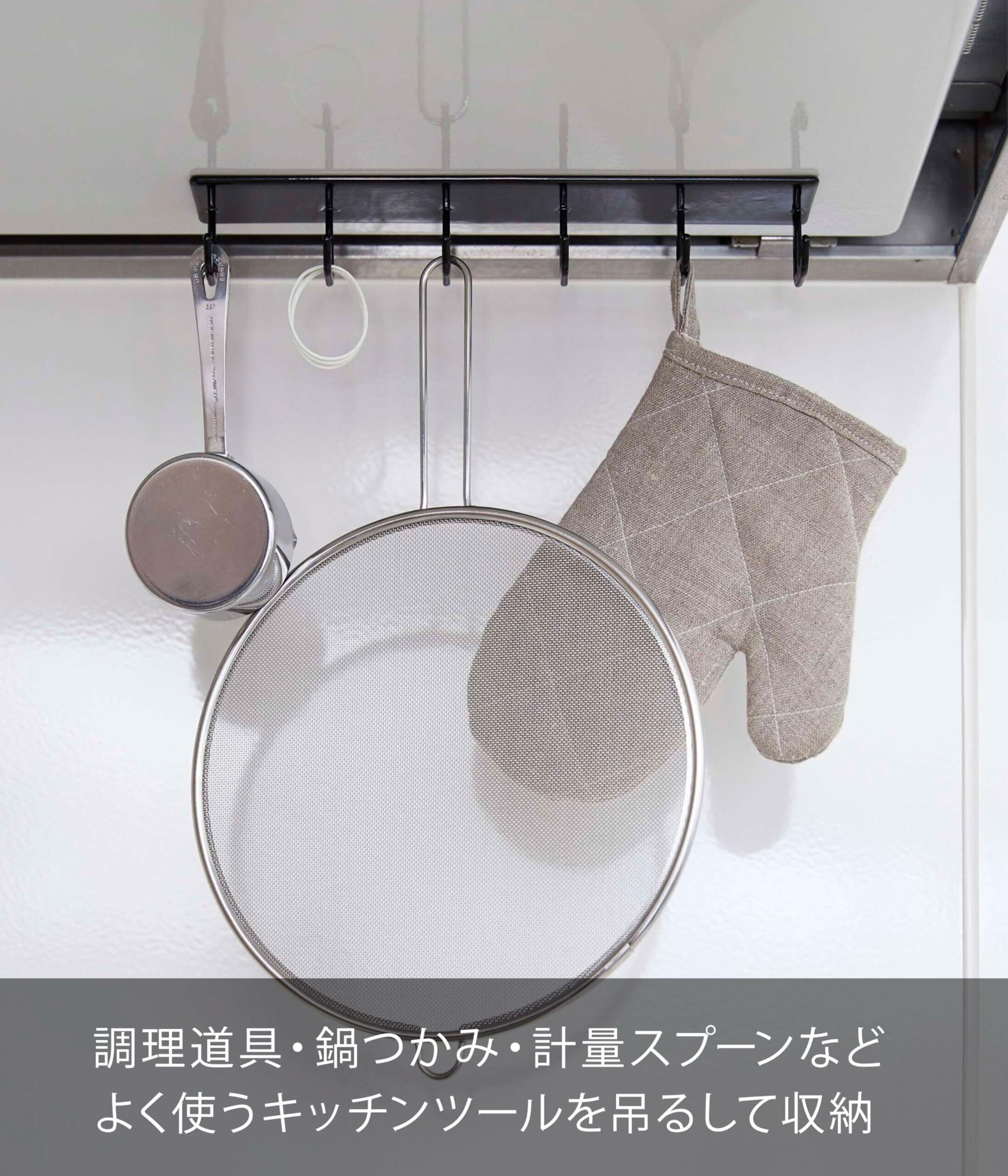 調理道具・鍋つかみ・計量スプーンなど、よく使うキッチンツールを掛けておくのに便利!