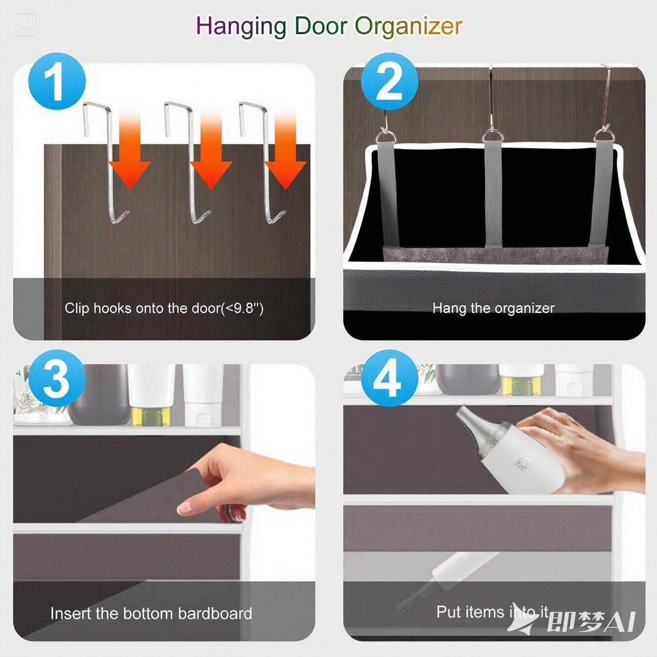 工具不要組立:寝室に掛けるドア組織器を30秒以内に設置し、フックをドアに掛け、ポケットに底部の段ボール5枚を挿入する。特殊な金属フックを使用すると、ドアの後ろの主催者は簡単にドアを傷つけることなく、スライドしたり騒音を出したりすることなく、厚さ1.98インチのドアを取り付けることができます。