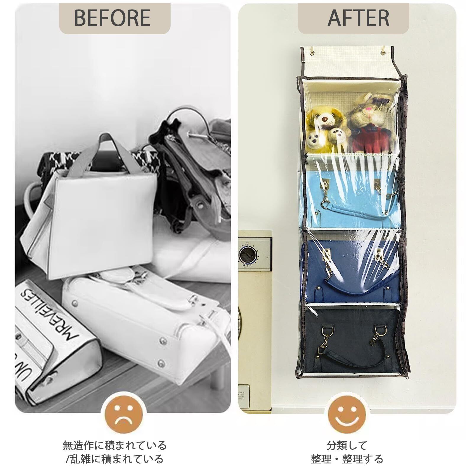 壁やドアに掛けるだけ小物類から靴箱まで、アイデア次第で使い方自由で。大人のハンドバッグ、靴、財布、セーターからベビー服、おもちゃまで何でも収納できます。