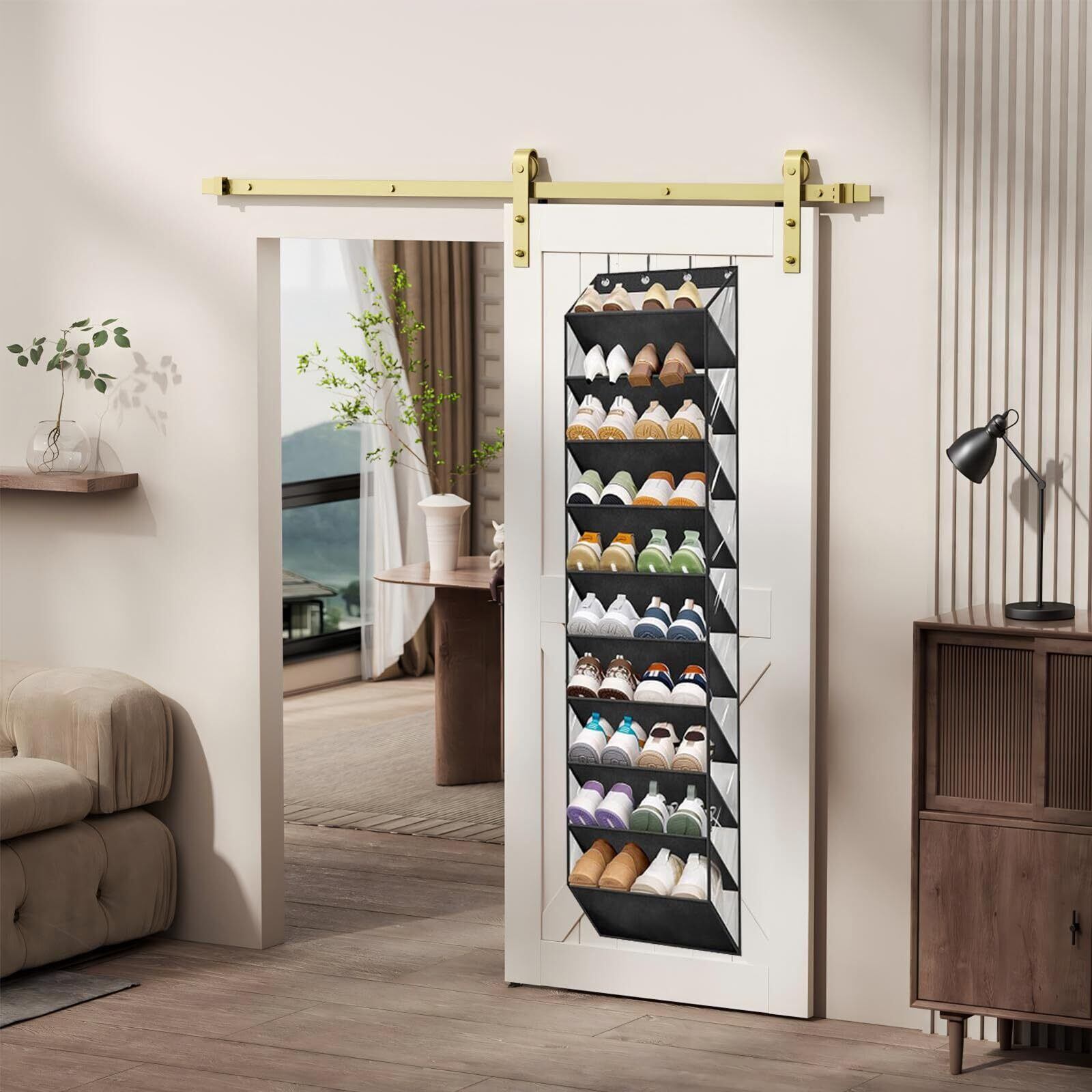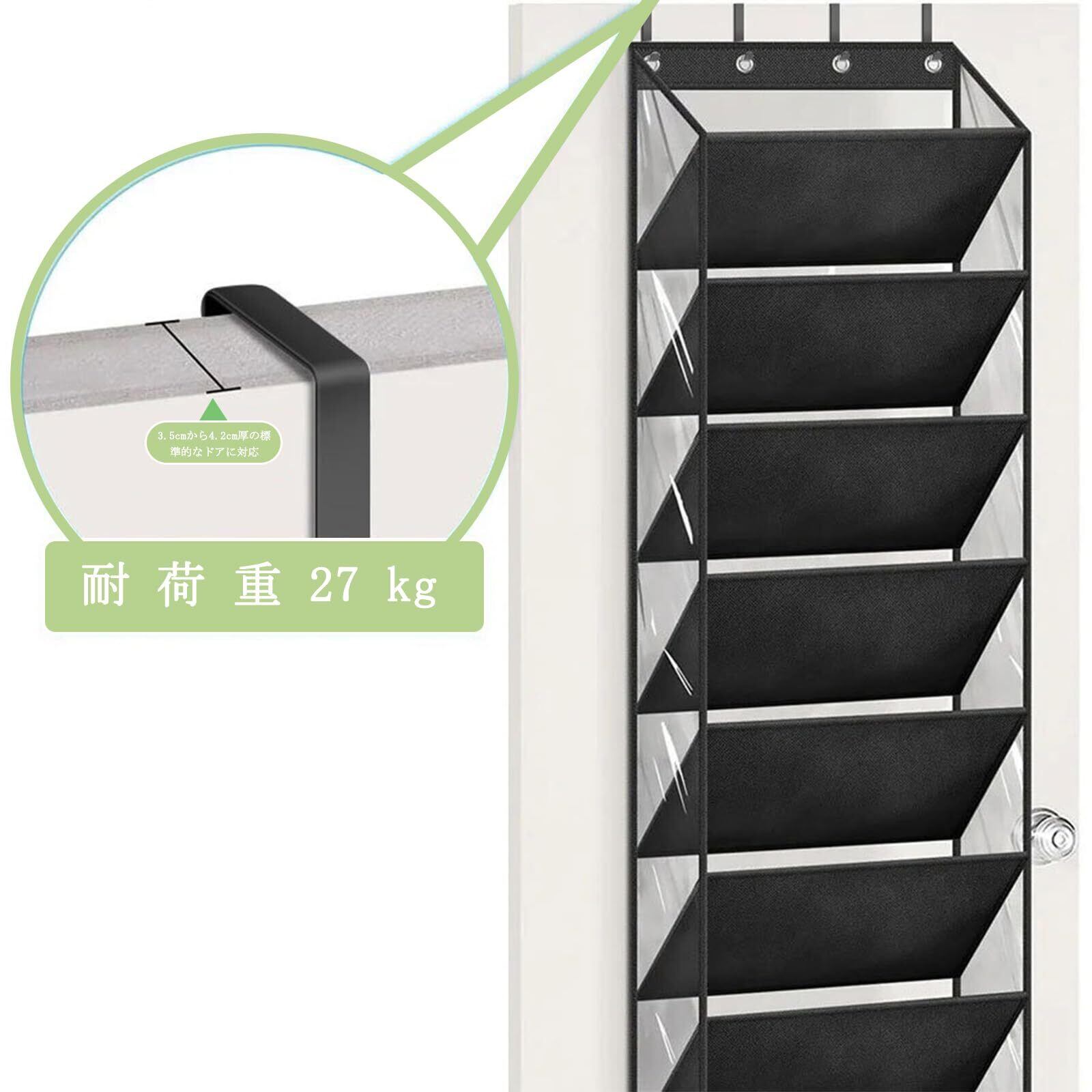 靴 収納 ウォールポケット 壁掛け 省スペース ドア掛け シューズラック 突っ張り 吊り下げ 大容量 幅42x奥行25x高さ180cm ブラック 透明窓付き 耐用