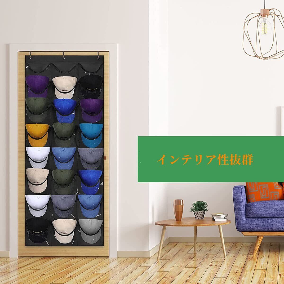 【省スペース】:このウォールポケットは縦方向に吊るしてコンパクトな収納にするので、狭い空間を最大限に活用できます。縦方向の収納により、野球帽の収納やディスプレイが簡単になり、キャップや帽子が散らかることはもうありません。そうすると、部屋をきれいに整理できます。