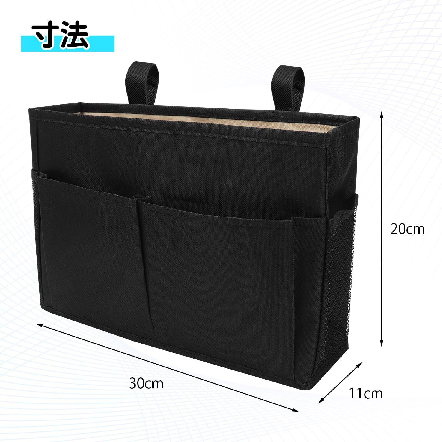 ドア収納バッグ ベッドサイドポケット 壁掛け収納ラック 吊り下げ式 小物整理ポケット 車用・ベッド用・学生寮用 収納ボックス 雑貨収納 便利グッズ (黒収納バッグ シングルパック)