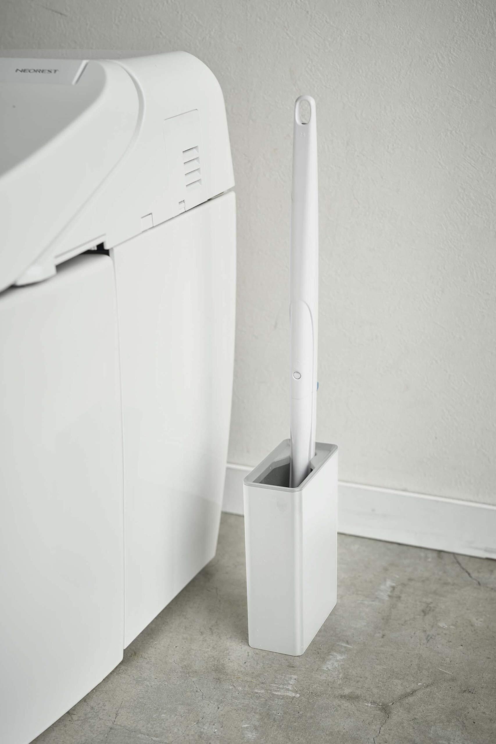 \【◆山崎実業(Yamazaki) 流せるトイレブラシスタンド プレート ホワイト 約W5.5XD11XH17cm プレート トイレブラシケース 4857】衛生的でスタイリッシュなトイレブラシの収納方法!/