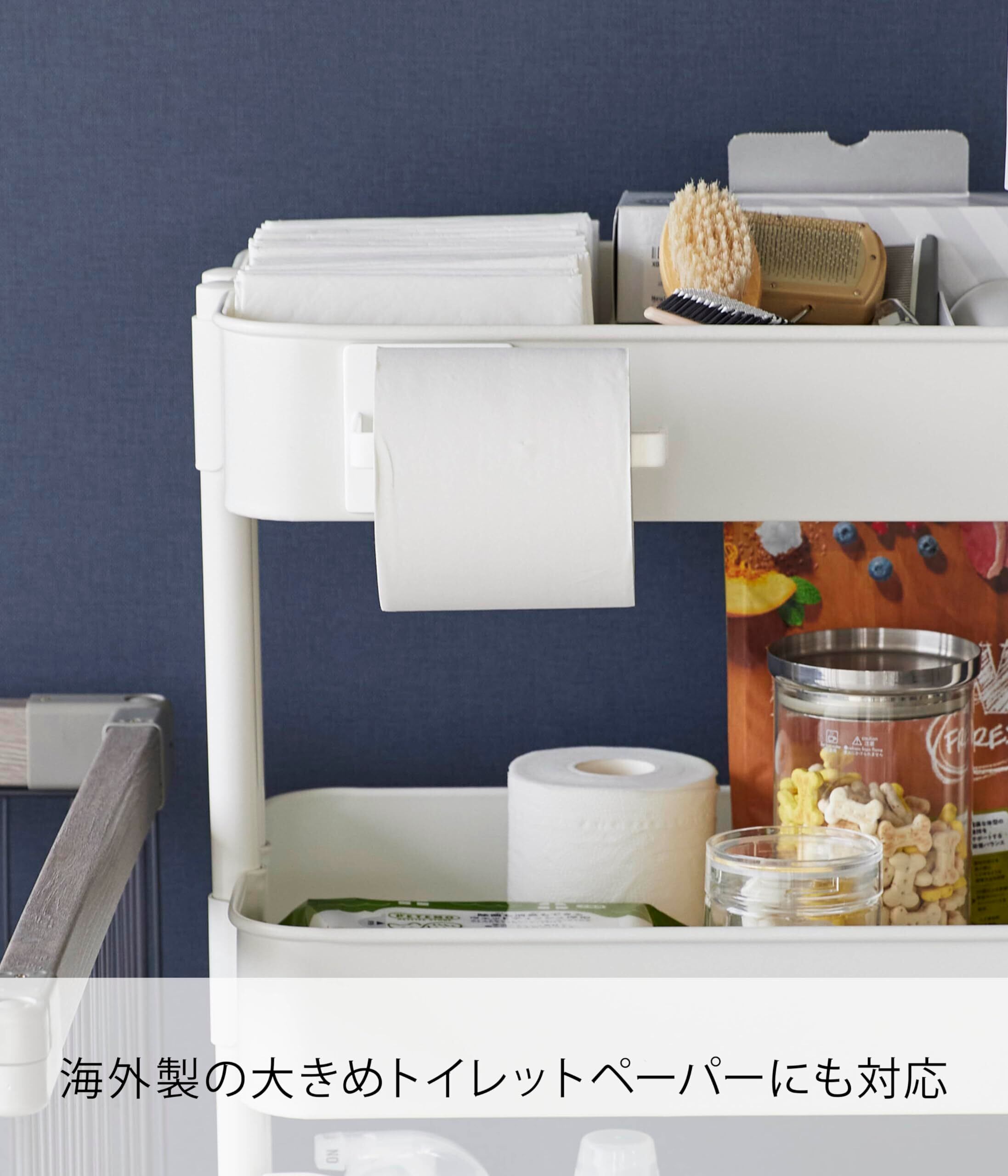耐荷重:約350g(衝撃をゼロとした場合の静止耐荷重です) ・対応サイズ:直径約13cm 幅約12cm以内の一般的なトイレットペーパーロール