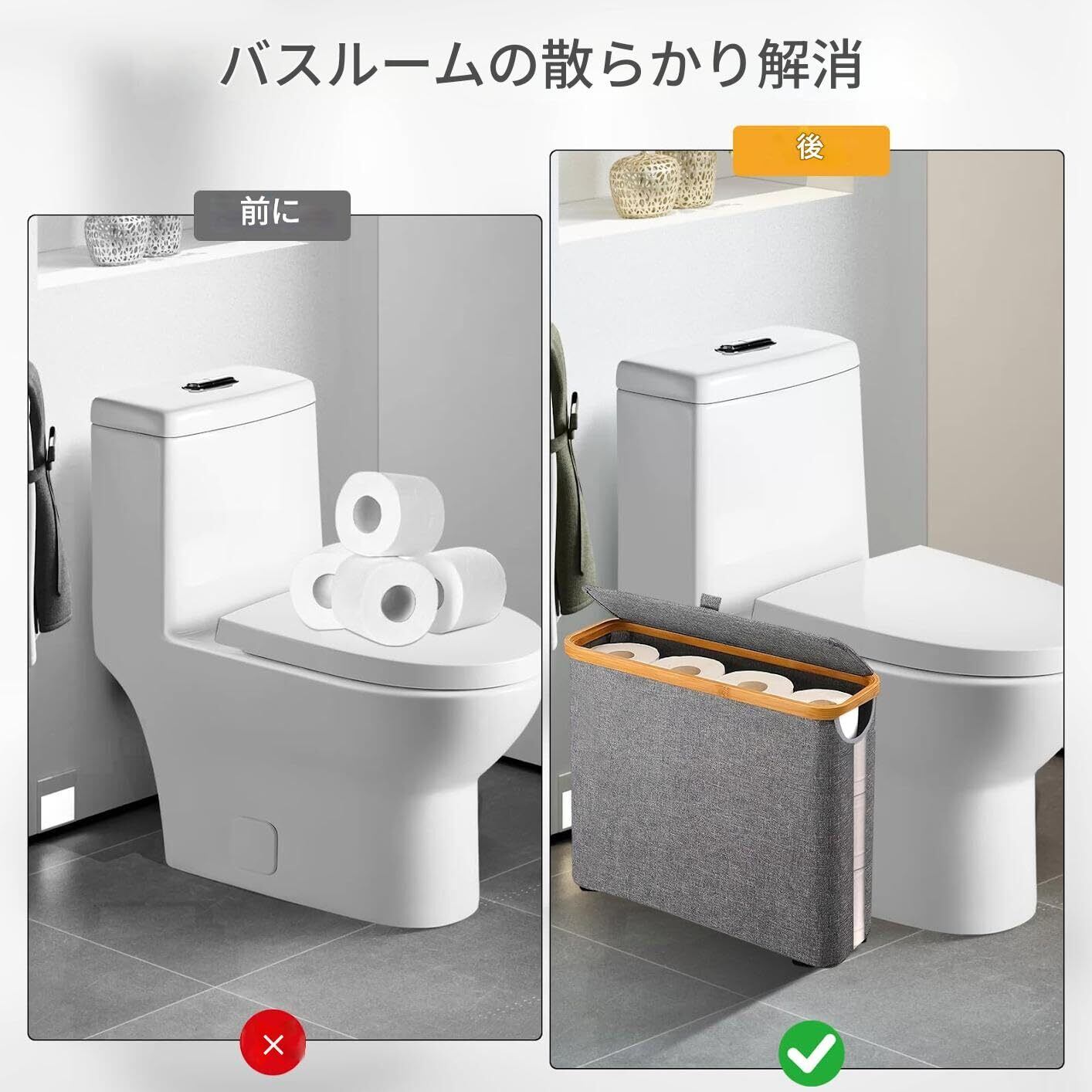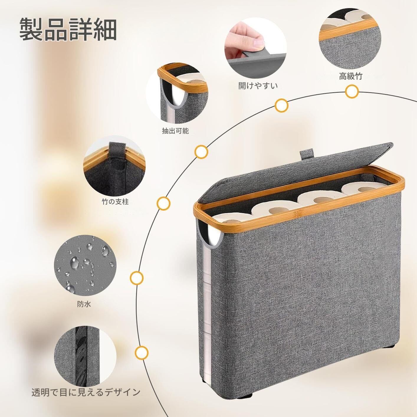 【多機能&省スペース】このトイレットペーパー収納ボックスは、紙ロールの収納だけでなく、おもちゃ、タオル、汚れた衣類、バスルームの必需品の収納にも適しています。耐久性に優れた素材を使用し、スタイリッシュなデザインで、トイレ、洗面所、シンク下、キャンピングカー、クローゼットなど狭いスペースに設置可能です。