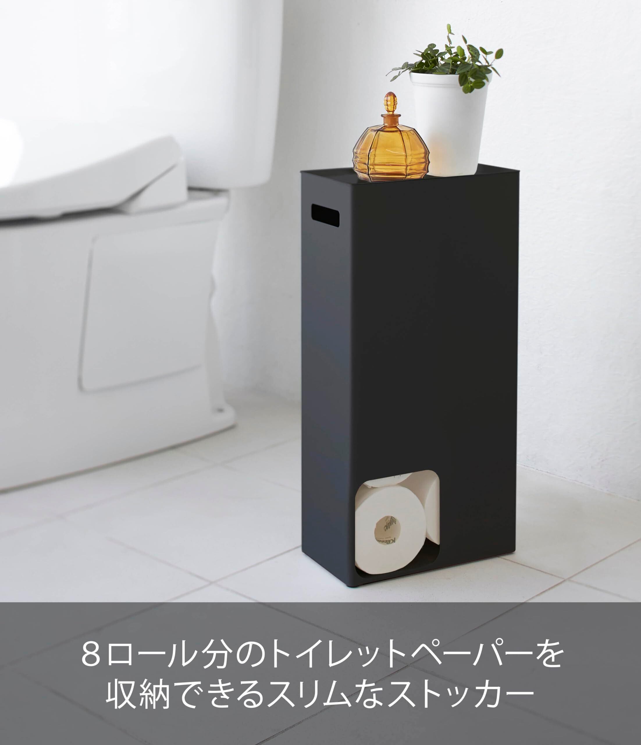 \【◆山崎実業(Yamazaki) トイレットペーパー ストッカー ブラック 約W23XD12.5XH48cm タワー】洗練されたデザインでトイレをスマートに収納!/