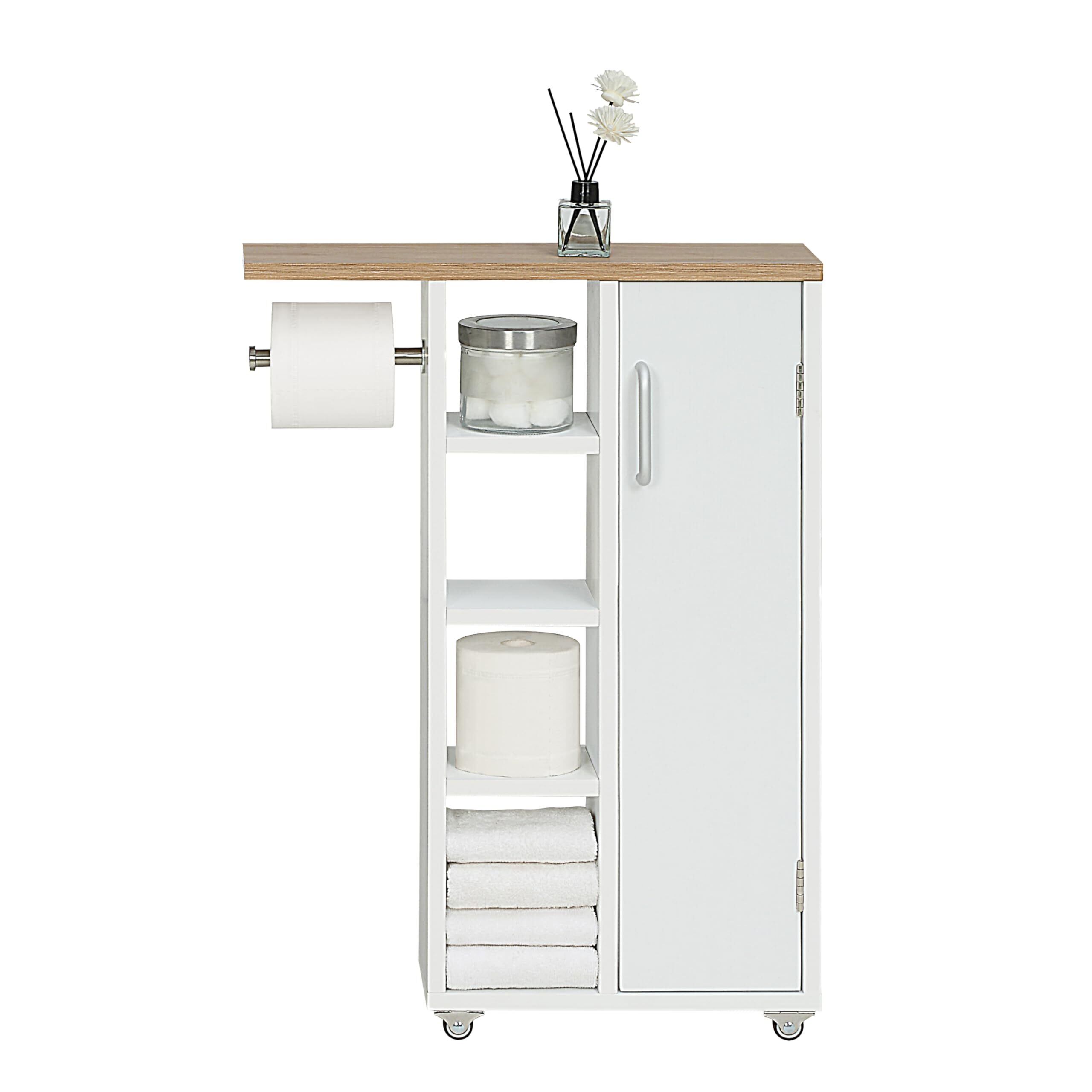 サニーポイント ハンドル付き超スリム トイレラック | キャスター付きトイレットペーパーホルダー | 隙間収納カート 人工木目調天板 - (ホワイト)