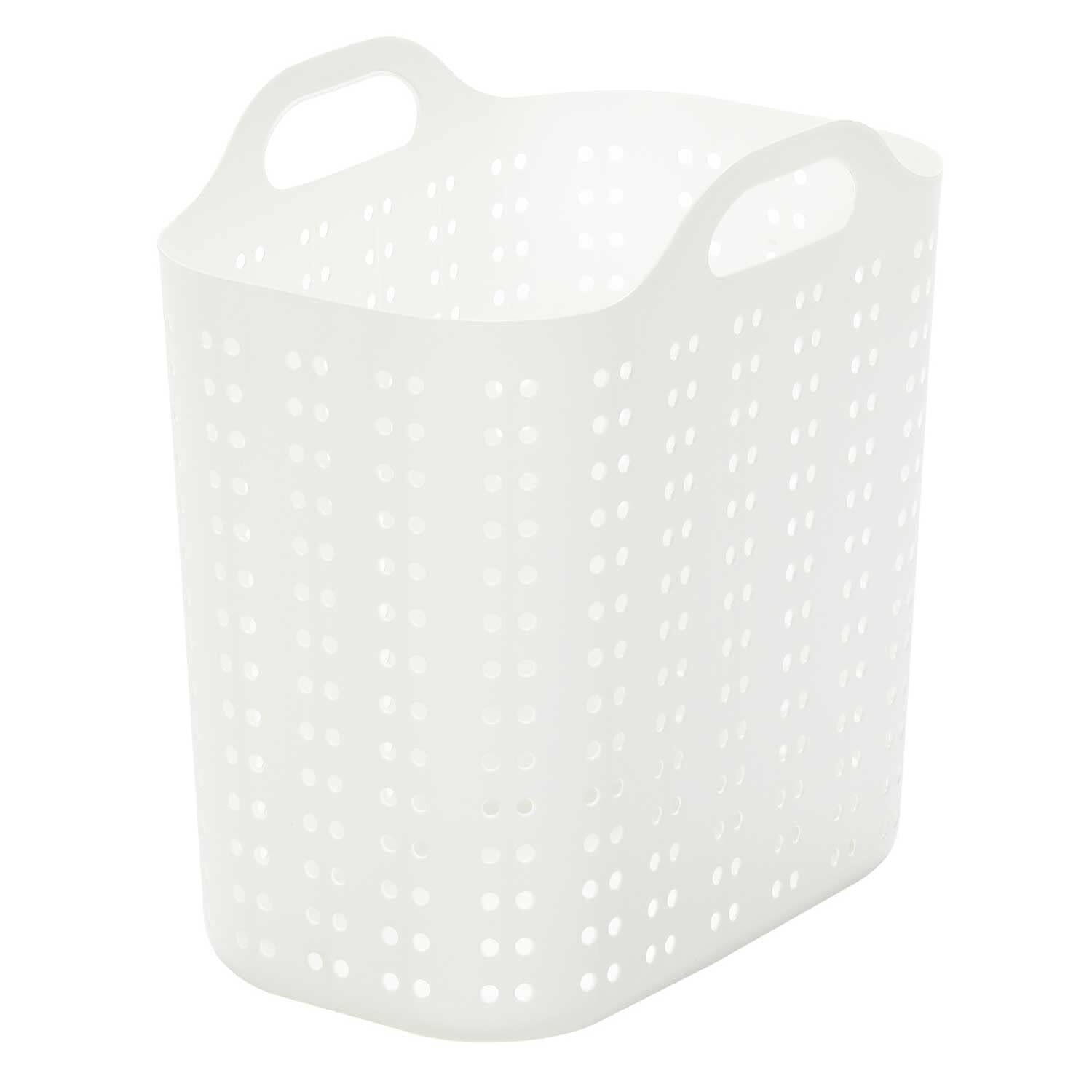 サンカ サンバッサ やわらか素材のソフトバスケット スリムなかたちですっきり収納 L ホワイト ドット穴が小さく衣類が傷つきにくい 軽量 大型 大容量 通気性 片手で持ち運び プラスチック (幅42×奥行28×高さ42cm) 簡単お手入れ 清潔 ランドリー 洗濯かご 銭湯 サウナ おしゃれ 日本製 SANKA VOB-LWH