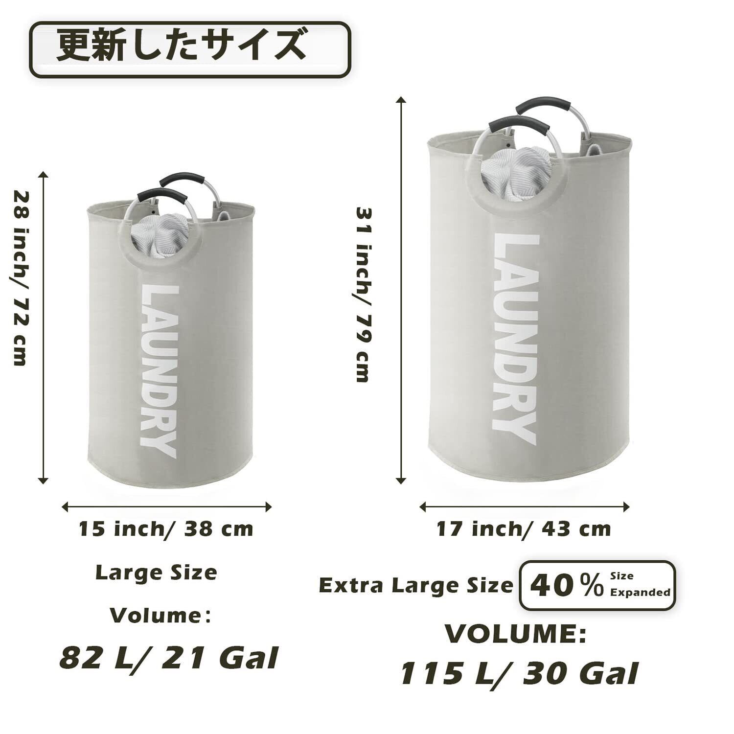 YOUDENOVA ランドリーバスケット 大容量82L せんたくかご 85%防水性 折りたたみ 撥水加工 耐荷重15KG 洗濯物入れ 取っ手付き ランドリーバッグ 衣類収納 寝室 脱衣所 リビング クローゼット内 幅38×高さ72(cm) (ライトグレー)