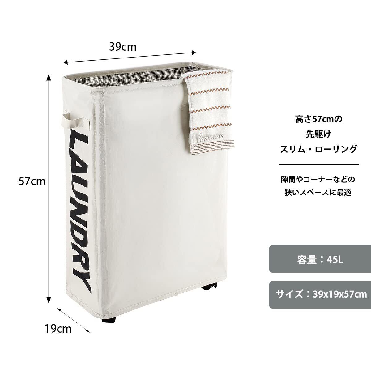 ✨【「Caroeas 45L Slim 洗濯かご」は、スリムなデザインで洗濯物をスマートに収納できる、便利なランドリーバスケットです!】キャスター付きで、移動もラクラク。撥水加工が施されているため、湿った衣類も安心して収納できます。