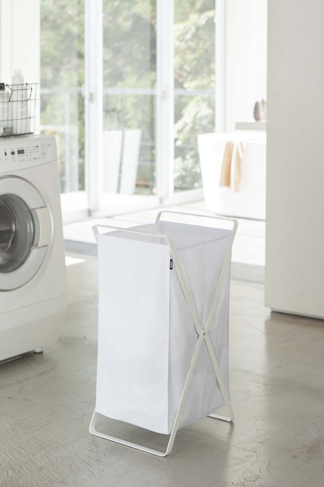 山崎実業(Yamazaki) ランドリーバスケット ホワイト 約30X36X64cm(使用時) タワー tower 洗濯かご 2484