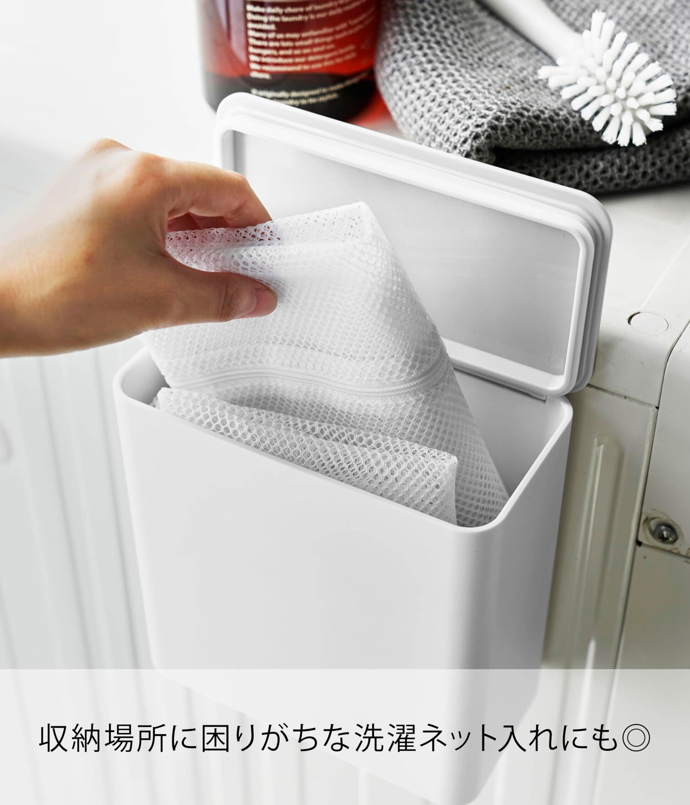 洗濯ネットの収納に。洗濯粉末洗剤の容器として。洗濯バサミの収納に。