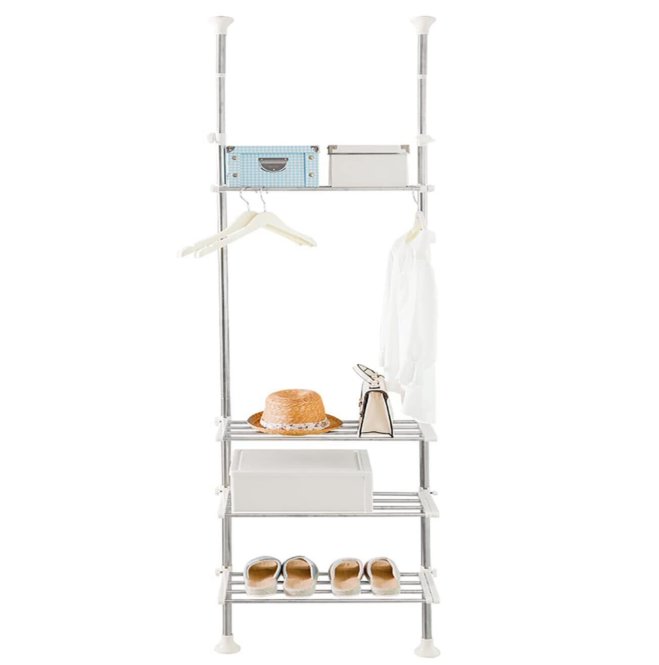 組み立てが簡単:簡単組み立て/工具不要、穴をあける必要がなく、ゆかいたや天井を損傷しない。4段棚でたっぷりと収納できます。