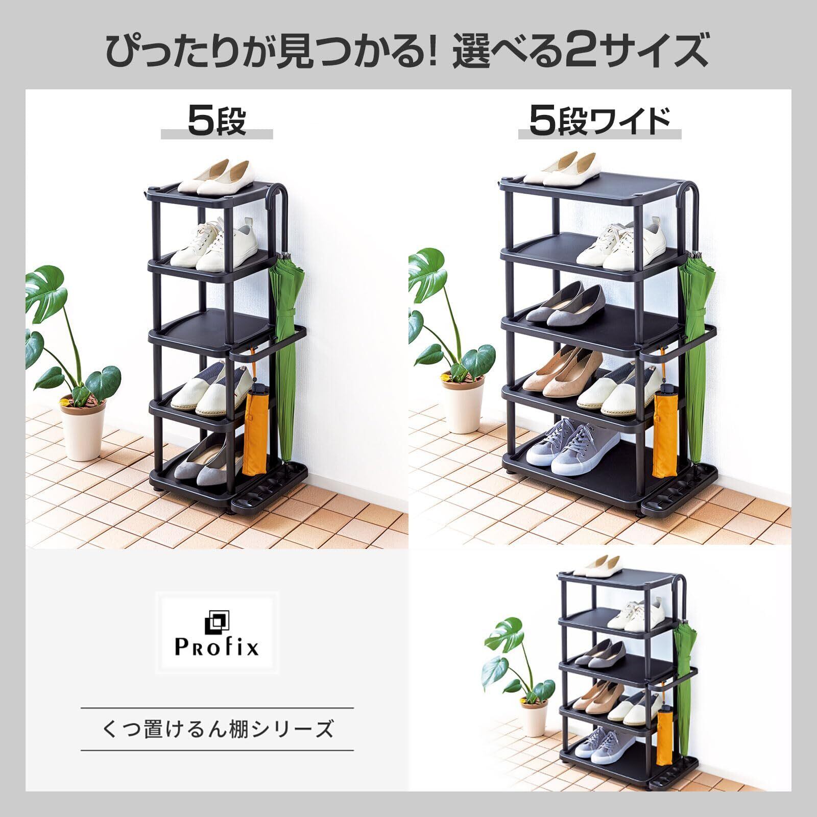 天馬 組立が簡単で玄関の省スペースを有効活用できるシューズラック くつ置けるん棚 5段 傘も一緒に収納できるスリム靴箱 シューズボックス 靴棚 【簡単組立】【幅36×奥行31×高さ85cm】