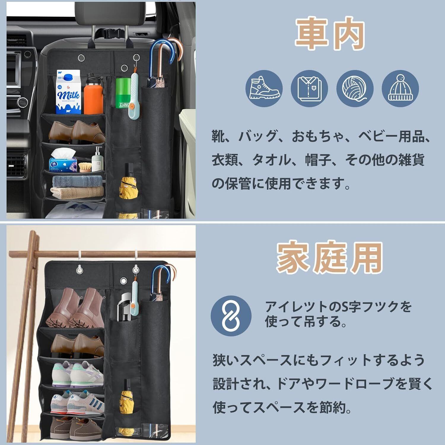 車用マルチシューズラック&傘入れ カーシューズラック 5段 車用収納ラック靴入れ 傘立て 傘ホルダー 小物収納グッズ 大容量 下駄箱 折りたたみ式 車用収納ボックスハイエースやNV350など 多車種対応 梅雨対策 車中泊土足禁止(ブラック)