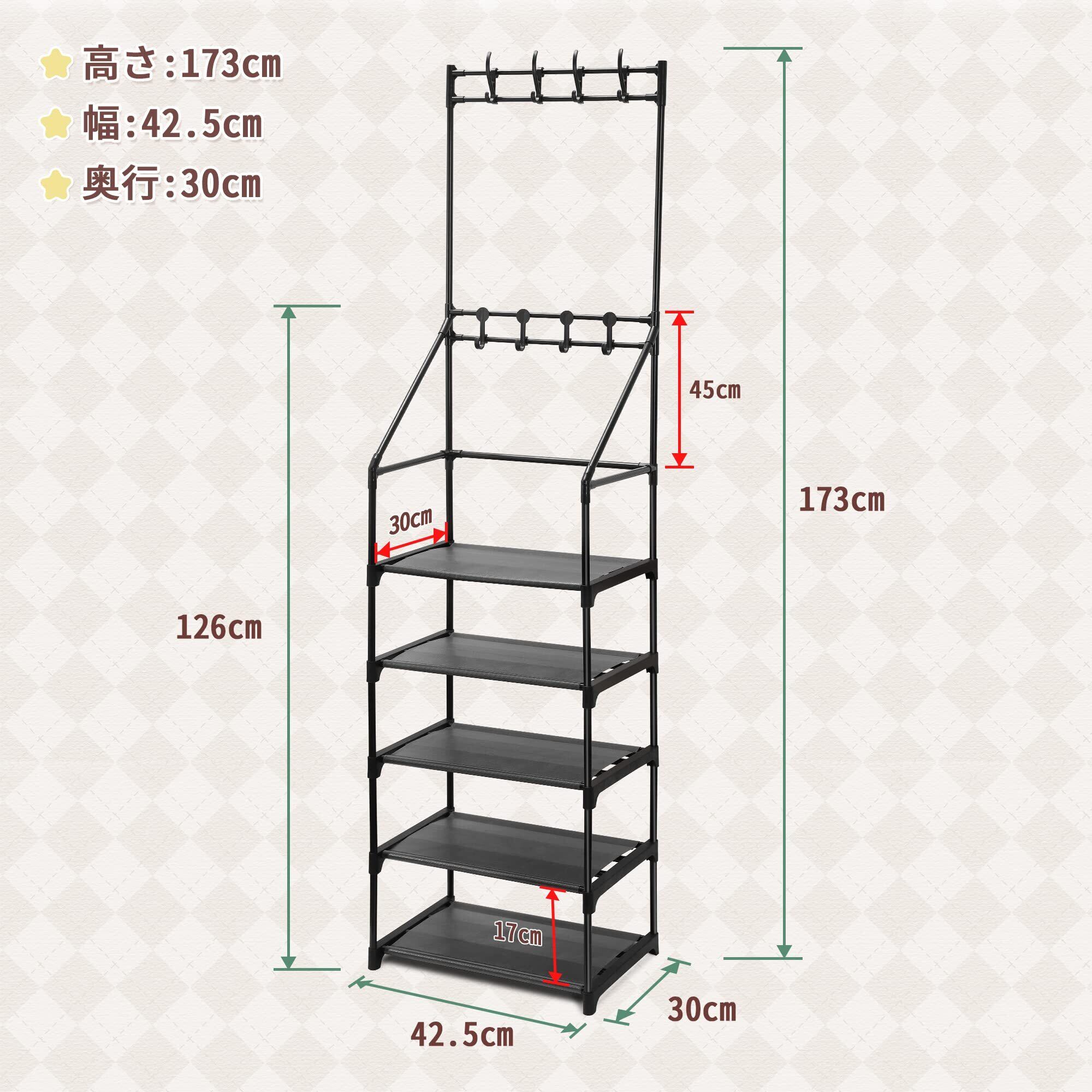 【 限定】チチロバ(TITIROBA) シューズラック 靴 収納 省スペース 5段 幅42.5cm 鉄パイプ 玄関棚 スリッパラック 帽子収納 キャップ かばんかけ 靴棚 おしゃれ ラック付き 靴だな 玄関 アパート用 ブラック