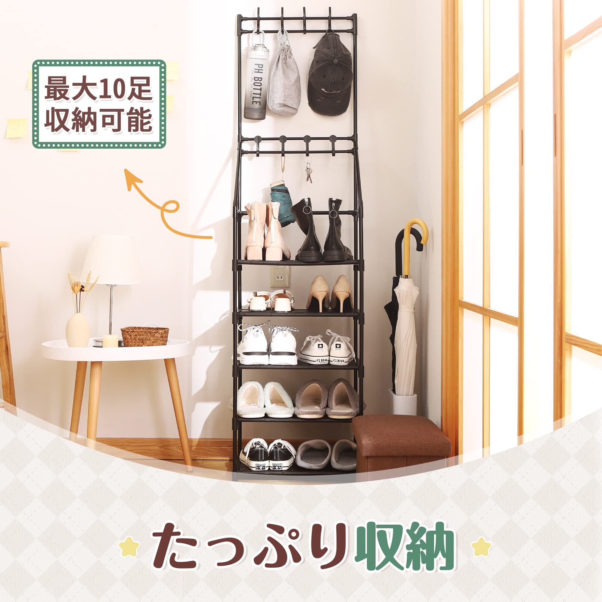 ✨【鉄パイプを使用した頑丈な設計により、しっかりと靴をサポートします!】さらに、スリッパや帽子、バッグをかけるラックもついているため、機能性も抜群です。