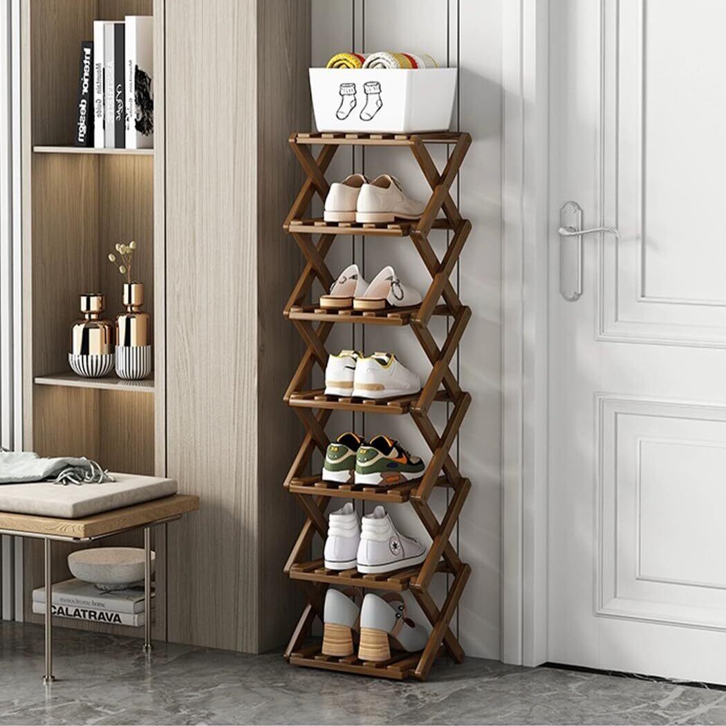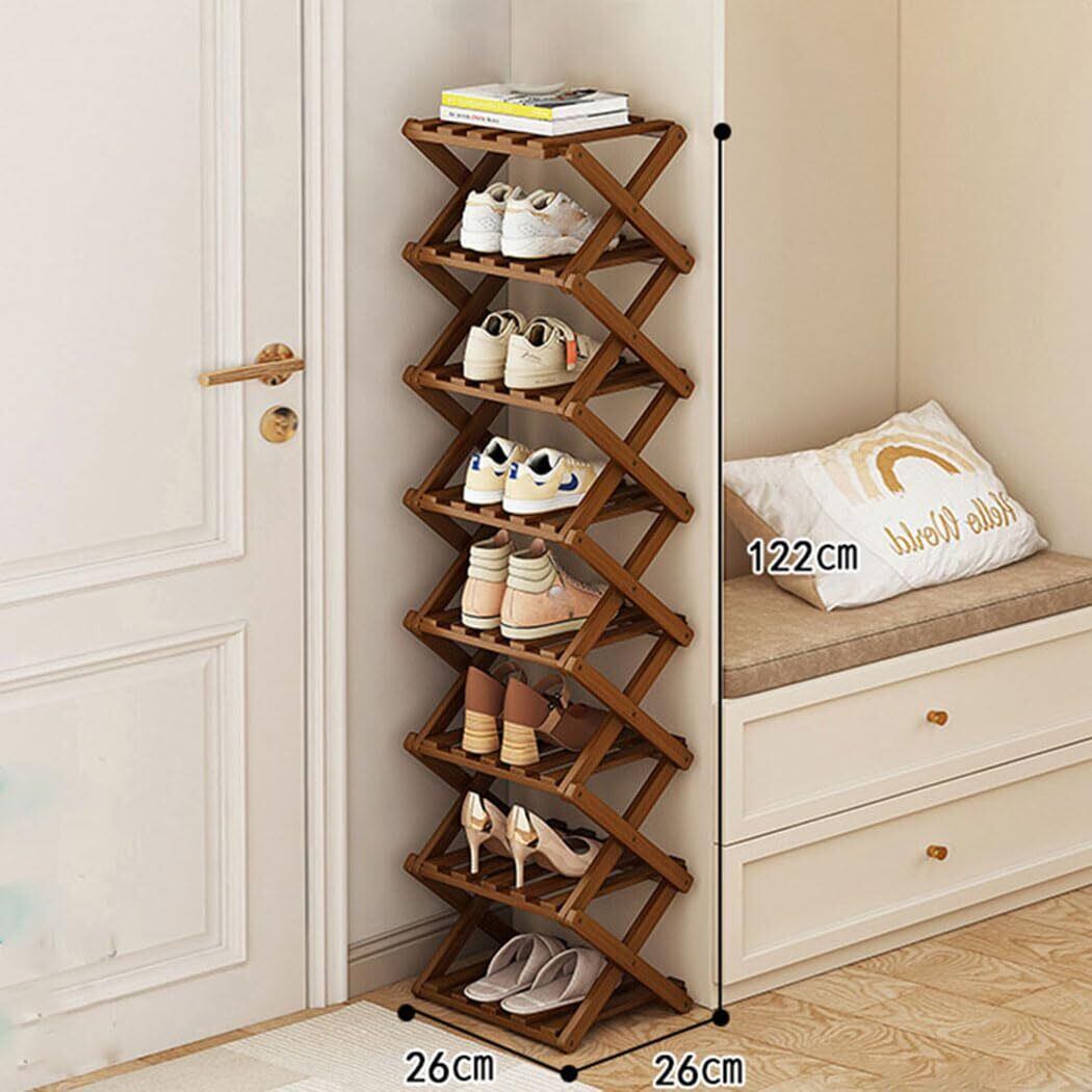 シューズラック 玄関 スリム 靴棚 折りたたみ可能 竹製 木目調 シューズ ラック スリッパ 収納棚 省スペース コンパクト おしゃれ すき間 幅26cm 奥行26cm ひとり暮らし (茶色8段)