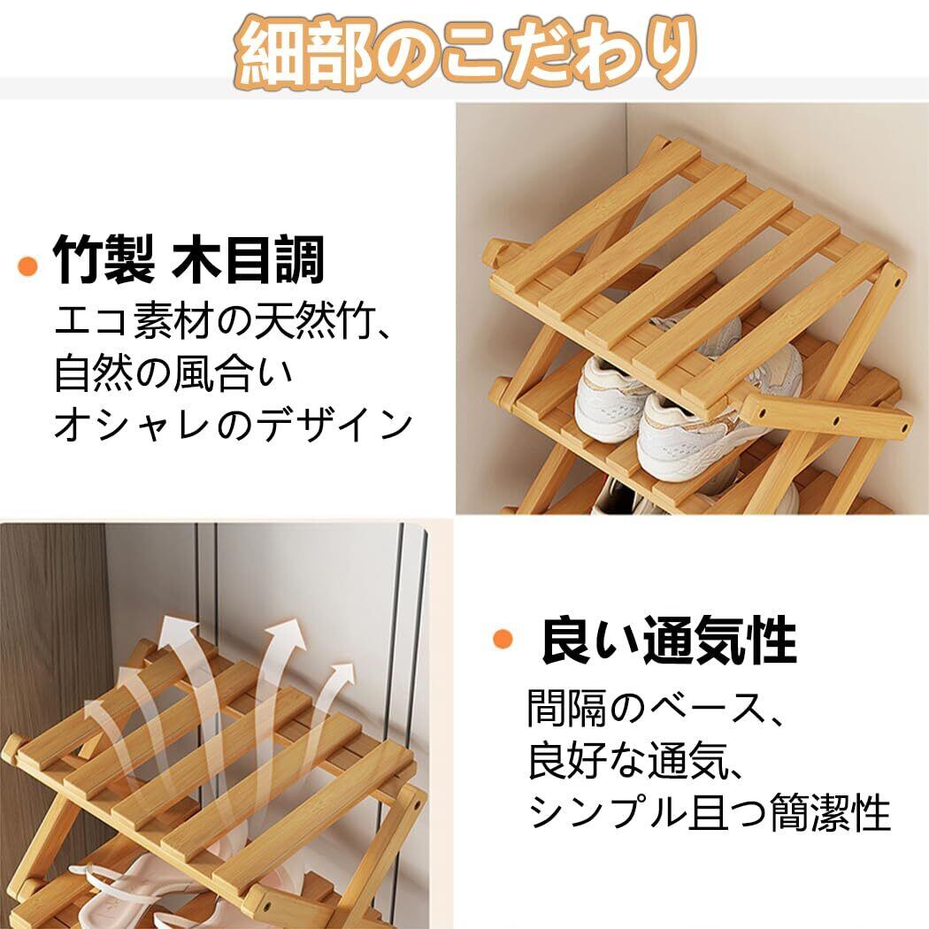 ✨【自然素材の竹を使用した木目調のシューズラックは、優雅で温かみのある雰囲気を醸し出します!】靴を美しく整然と収納し、インテリアとしても素晴らしい演出が可能です。