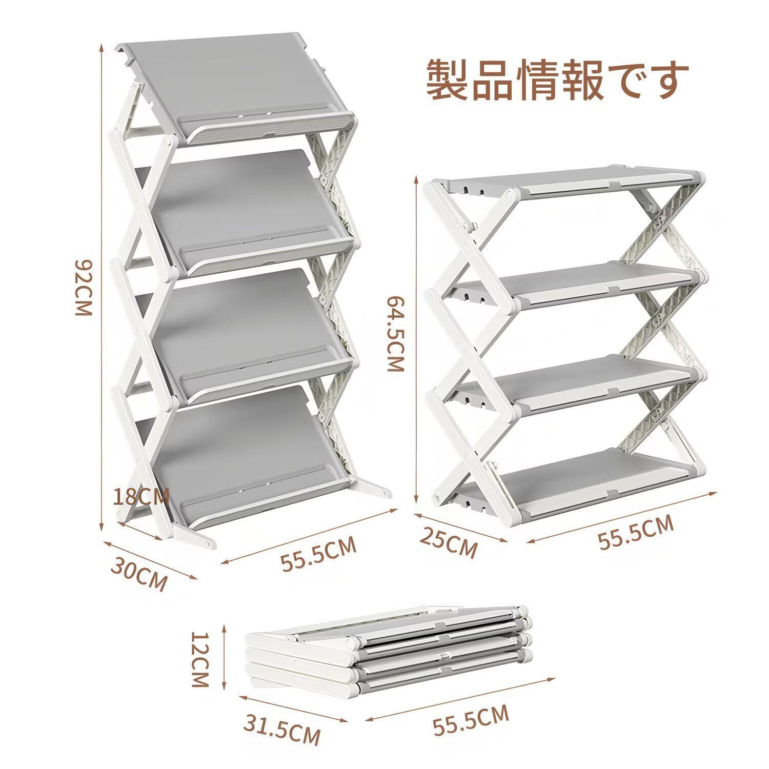 シューズラック スリッパラック X字構造 4段 スリム 靴収納 靴ラック 靴入れ 組立簡単 工具不要 省スペース 2way 斜め置き 平置き 大容量 玄関収納 コンパクト 靴棚 靴置き 軽量 据え置き型シューズラック ハイヒール グレー 幅55.5cm