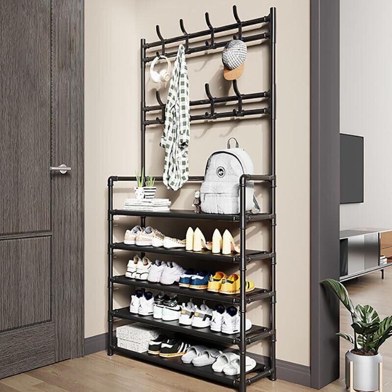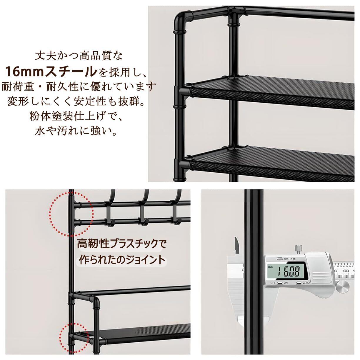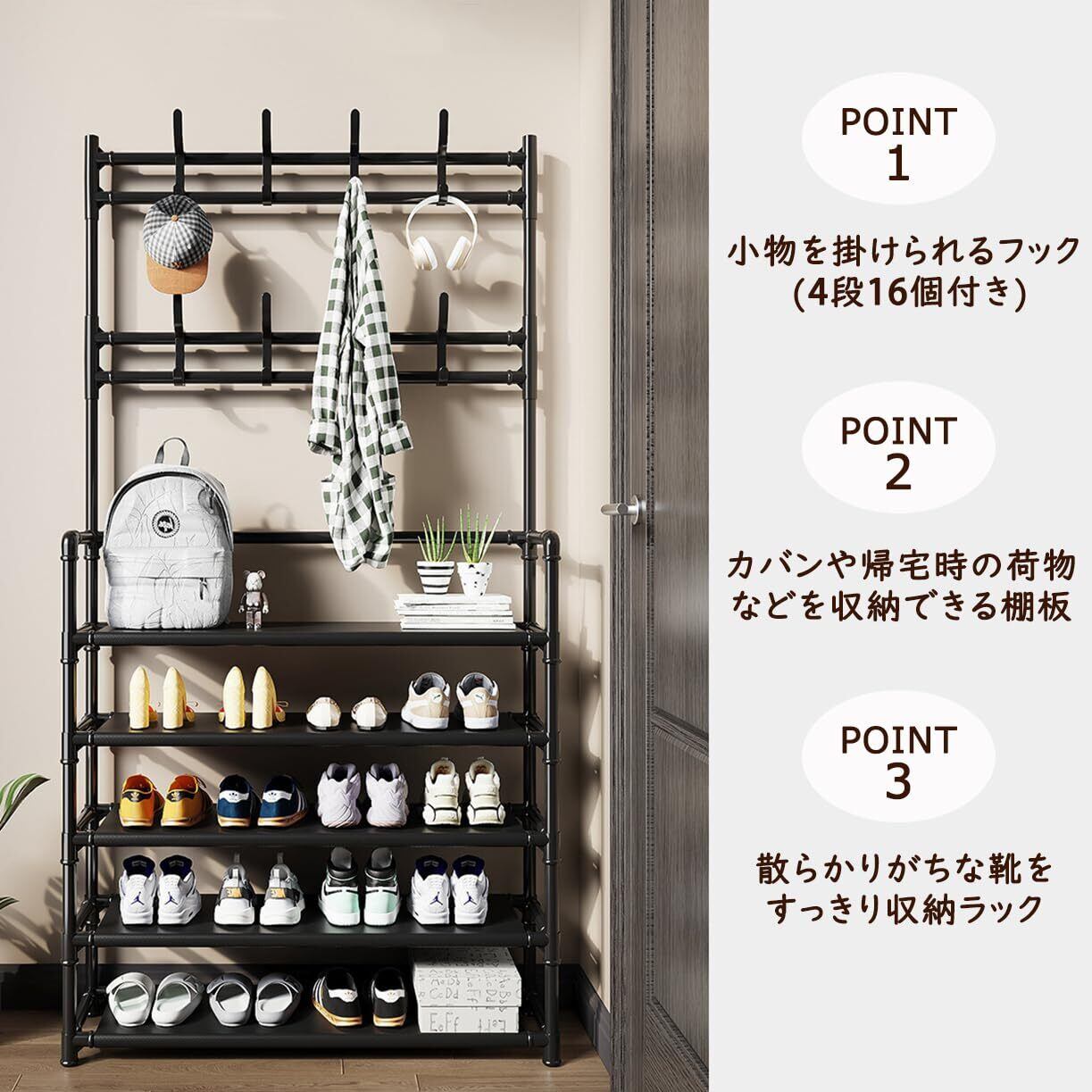 シューズラック フック付き 靴棚 下駄箱 省スペース スリム 多機能 コートラック 棚 靴収納 大容量 カバンかけ 帽子掛け 多目的 靴だな 玄関 小物 収納 (4段 幅60cm ブラック)