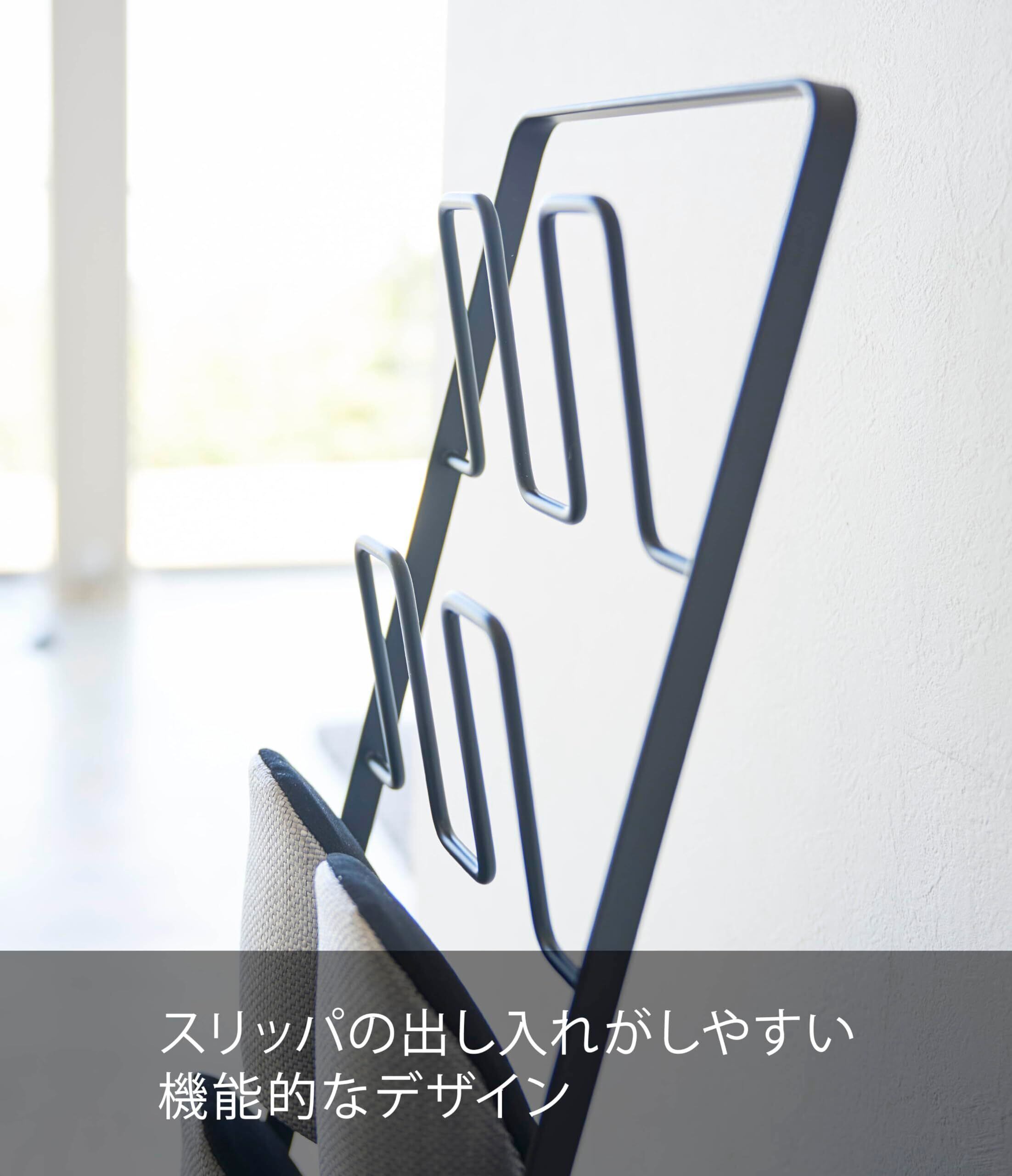 「山崎実業」のスリッパラックは、高品質な素材で制作され、耐久性にも優れています。スタイリッシュなブラックカラーで、現代的な印象を与えつつも、機能性をしっかりと兼ね備えています。
