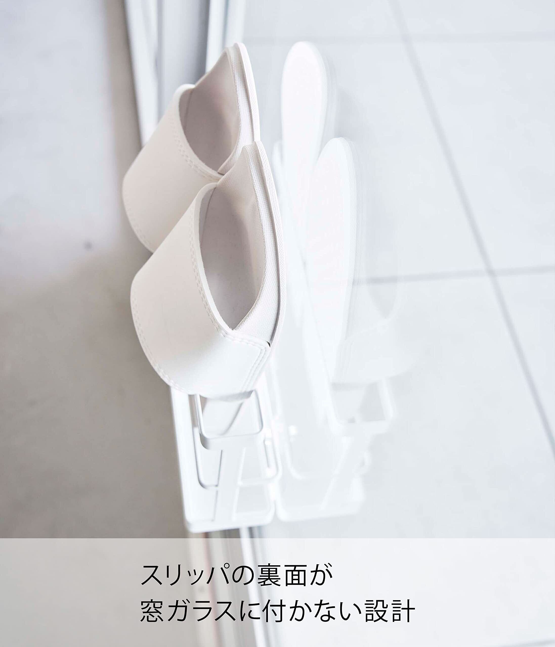 フィルムフックで窓ガラスに簡単取り付け!雨・風を避けて屋内外でベランダスリッパを浮かせて収納!使う場所に合わせてフィルムフックで窓に付けても、そのまま置いても使える2way仕様。