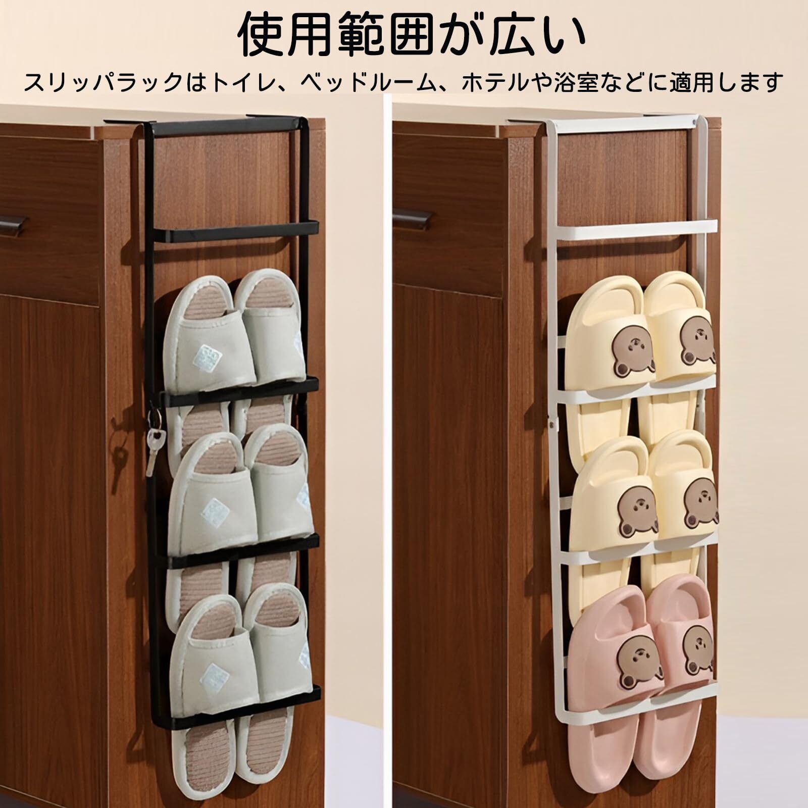 【使用範囲が広い】スリッパラックはトイレ、ベッドルーム、ホテルや浴室などに適用します。使用範囲が広い。上から差し込むように入れるだけの簡単設計。組立は不要です、完全品の状態に届きました。壁やドアの後ろに設置でき、床にある既存のすべての棚、キャビネット、靴の収納スペースを作成して、スペースを節約し、手元に置いておくことができます。