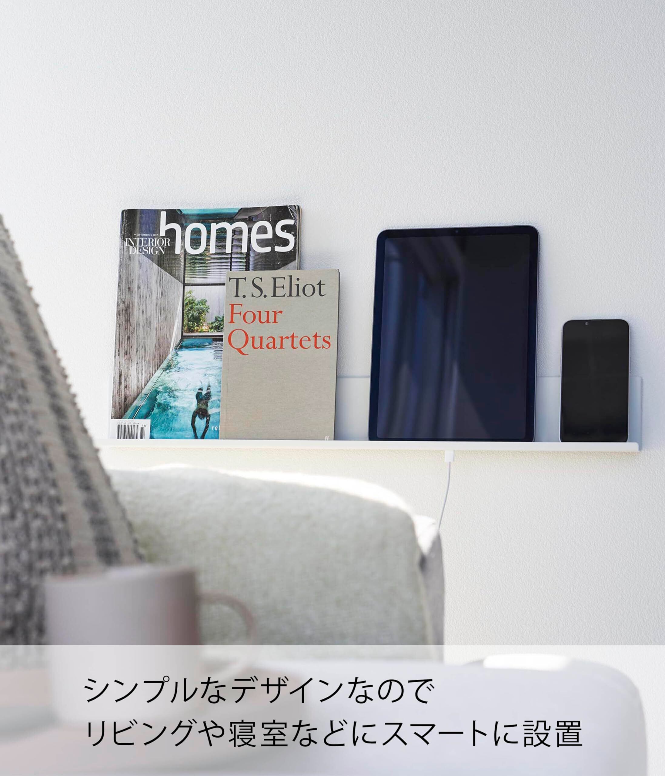 山崎実業(Yamazaki) 【 石こうボードピンセット・木ネジ 付属 】 石こうボード壁対応 タブレット & ブック棚 ホワイト 約W60×D6×H8cm タワー tower リビング ベッドルーム リモコン収納 タブレットPC収納 2196
