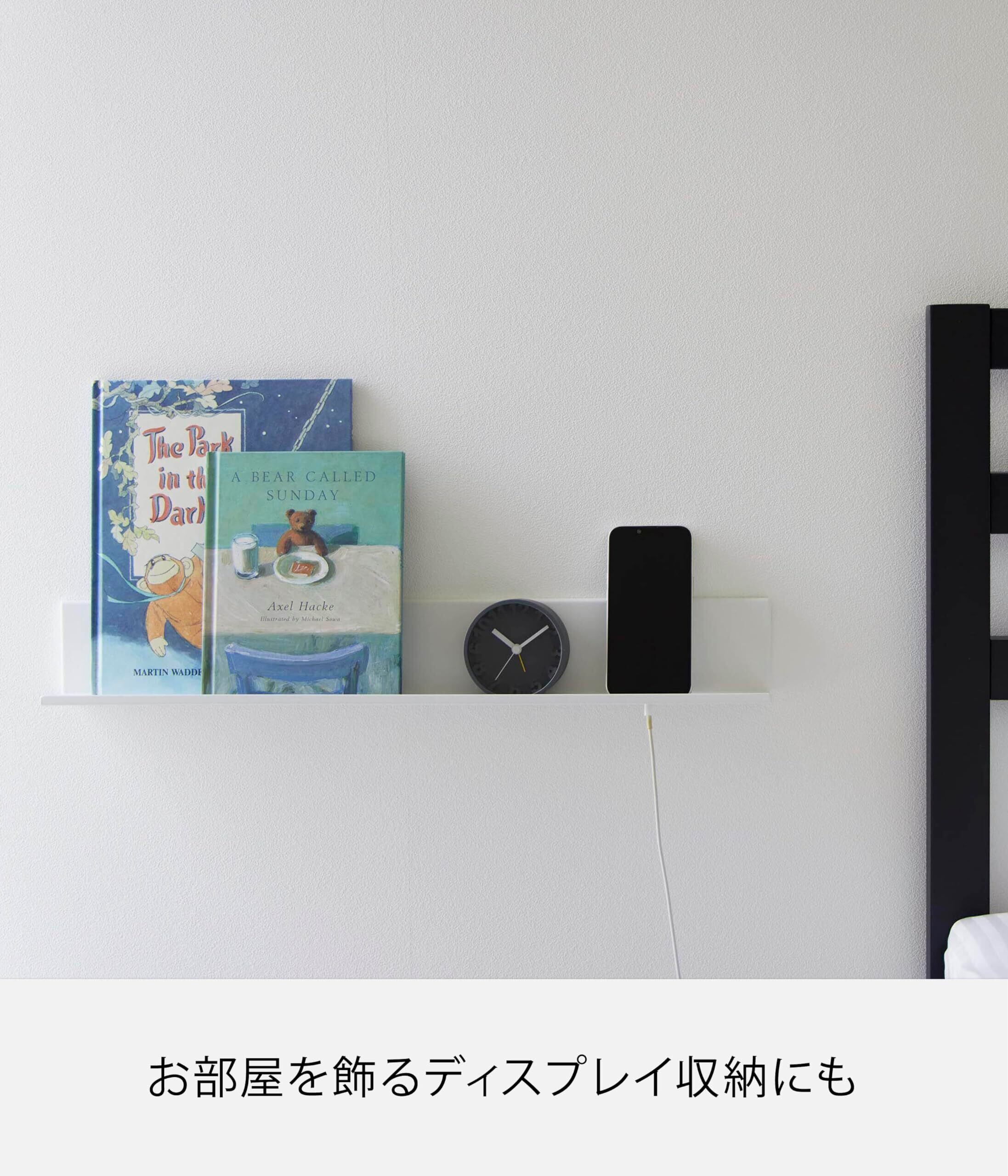 タブレットPCや本を石こうボードピンで壁に浮かせて収納できるスリムな棚。