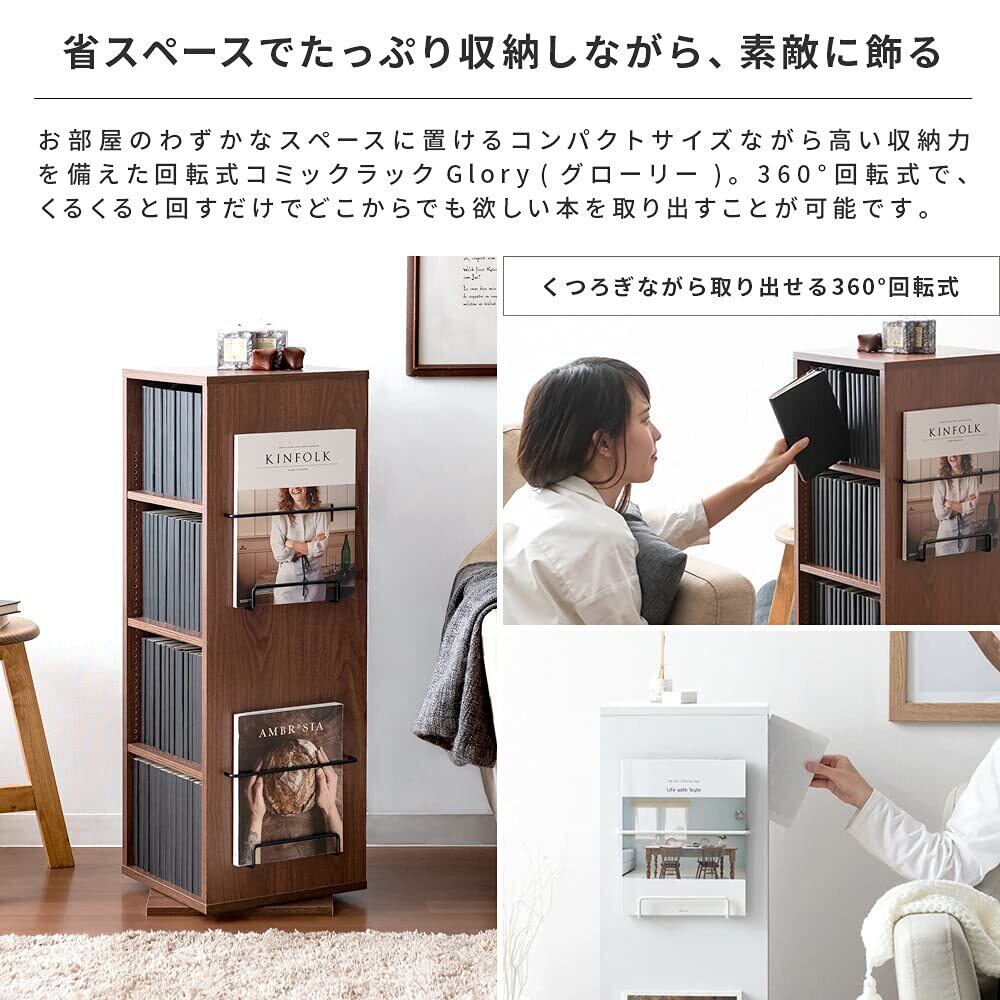 エア・リゾーム 本棚 マガジンラック 回転 おしゃれ リビング 収納 回転式コミックラック Glory(グローリー) (ホワイト, 4段)