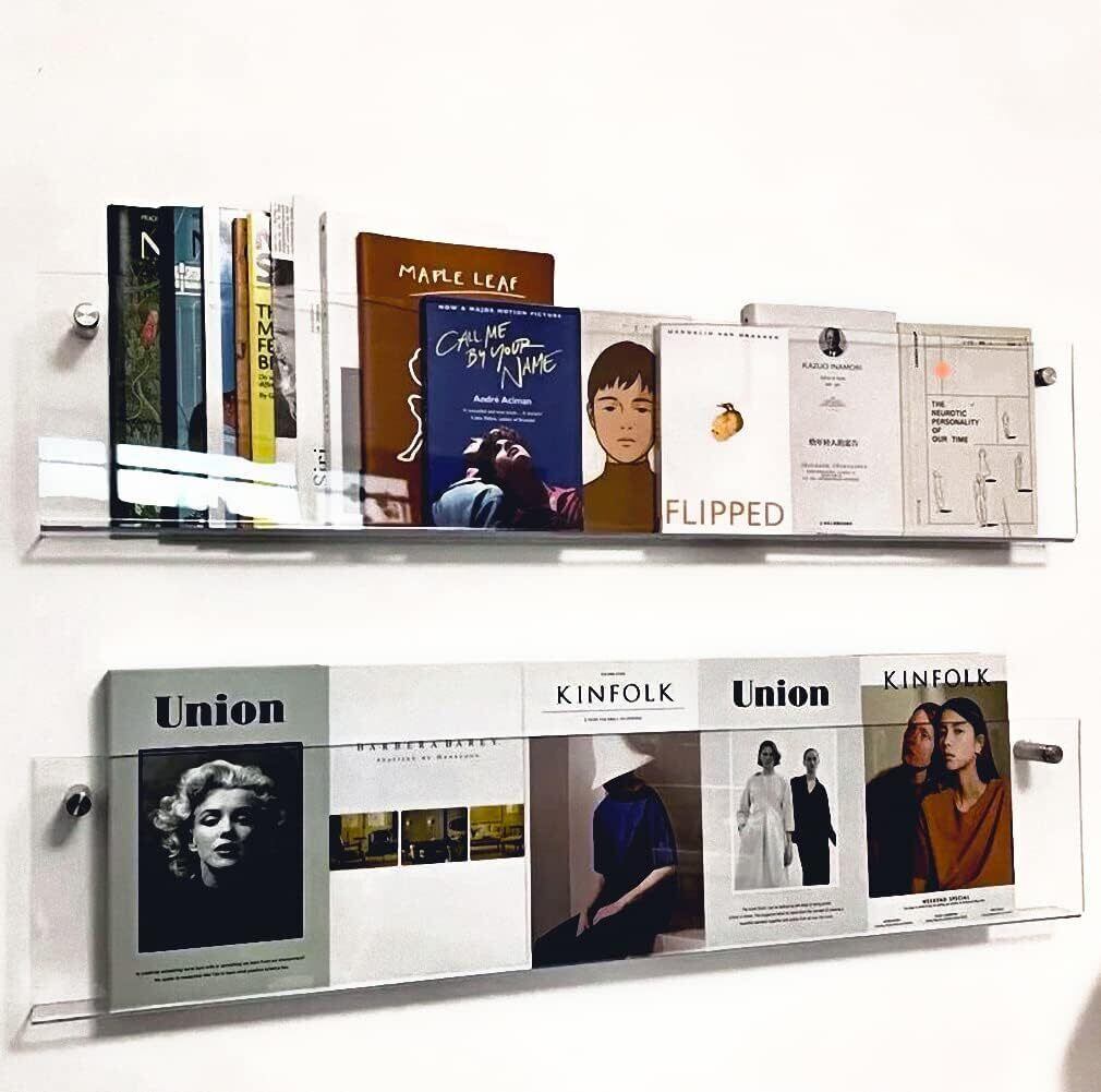 マガジンラック 壁掛け マガジンスタンド INS風 北欧 透明 アクリル製 雑誌ラック 壁掛け棚 本棚 ラック 壁面収納 パンフレットスタンド 60*15*5cm 80*15*5cm 100*15*5cm 40*15*5cm (透明:40*15*5cm)