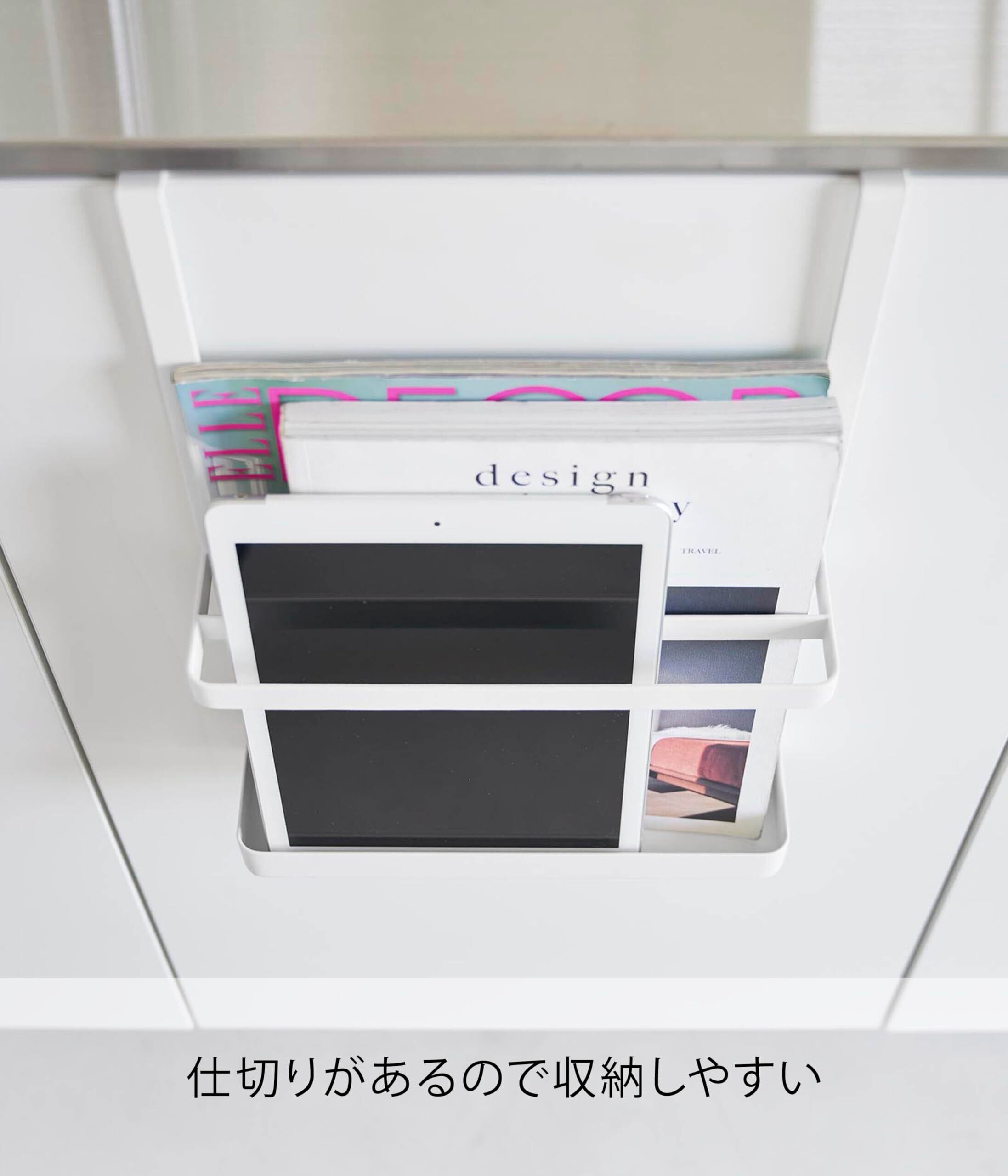 山崎実業(Yamazaki) 引っ掛け 宿題 & タブレット PC ラック ホワイト W25×D9.4×H35.2cm タワー tower マガジンラック タブレットスタンド 1785