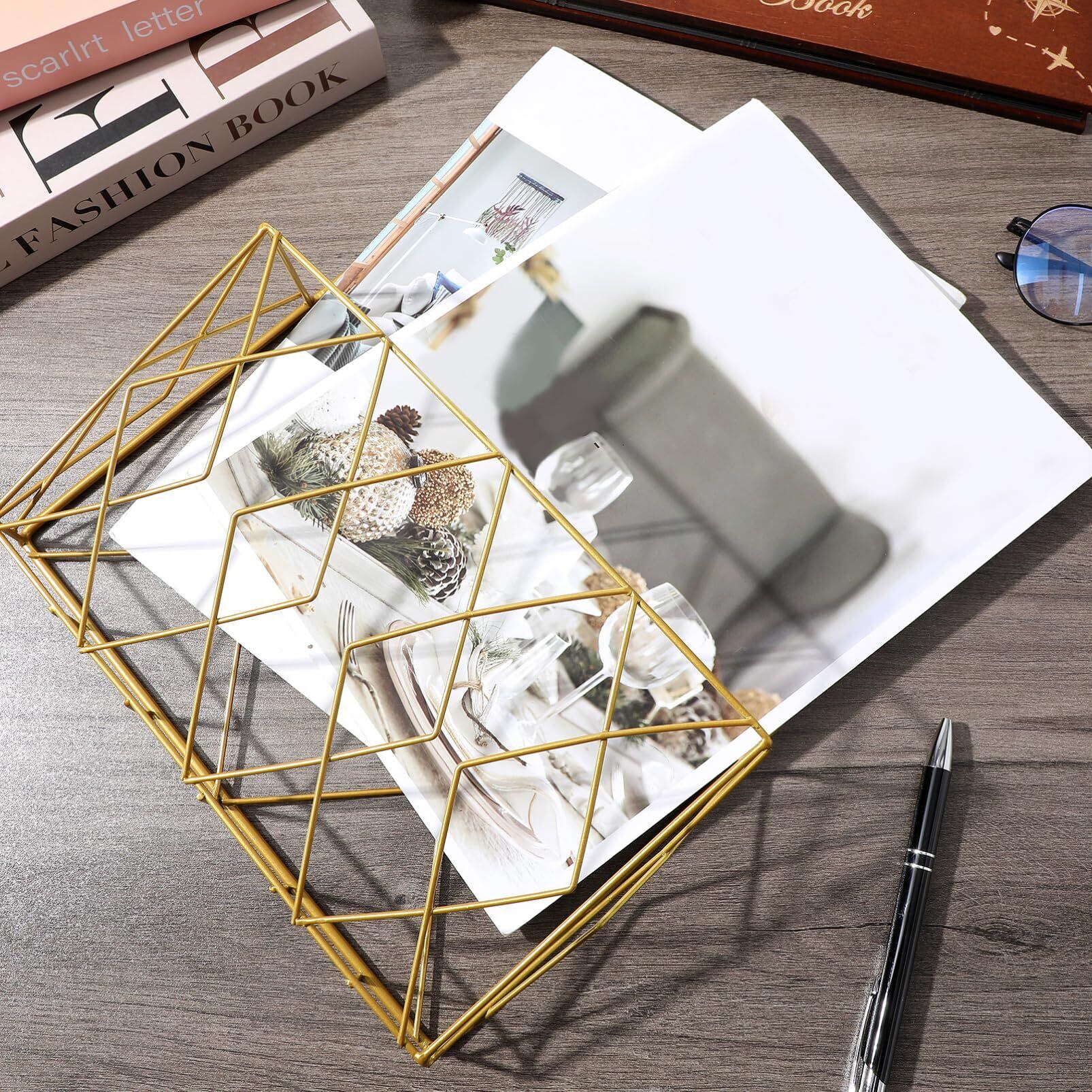 【金属素材とゴールドコーティング】金属製で耐久性に優れ、長期間の使用に耐え、サビや褪色に強く、お手入れも簡単です。オープンラインデザインにより、内部に何が収納されているか簡単に確認できます。読書資料、事務用品、工芸品などを分類して保管します。