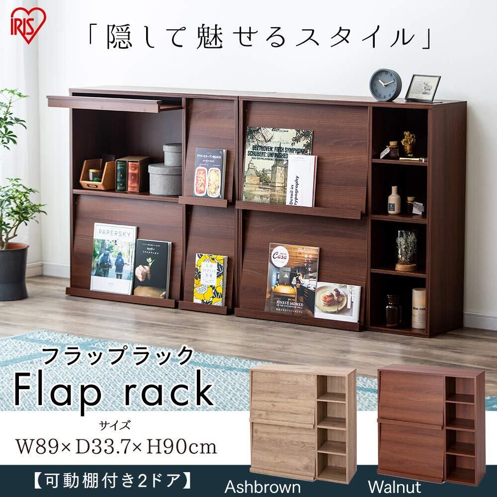 アイリスオーヤマ 本棚 おしゃれ マガジンラック ディスプレイラック 雑誌 幅89×奥行33.7×高さ90cm フラップラック FR-F2 アッシュブラウン