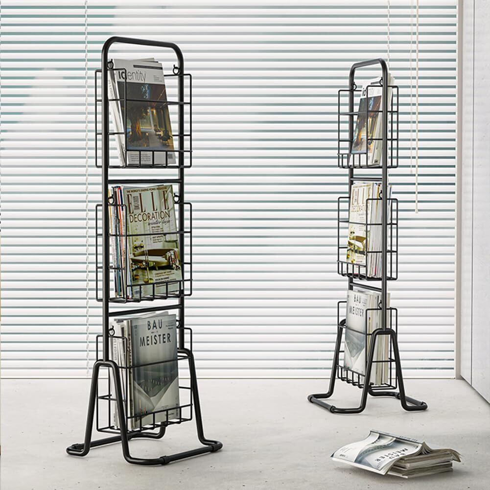 \【◆マガジンラック スリム アイアン 3段 マガジンスタンド 雑誌ラック 本棚 パンフレットスタンド 新聞ラック】スタイリッシュで機能的な収納アイテム!/