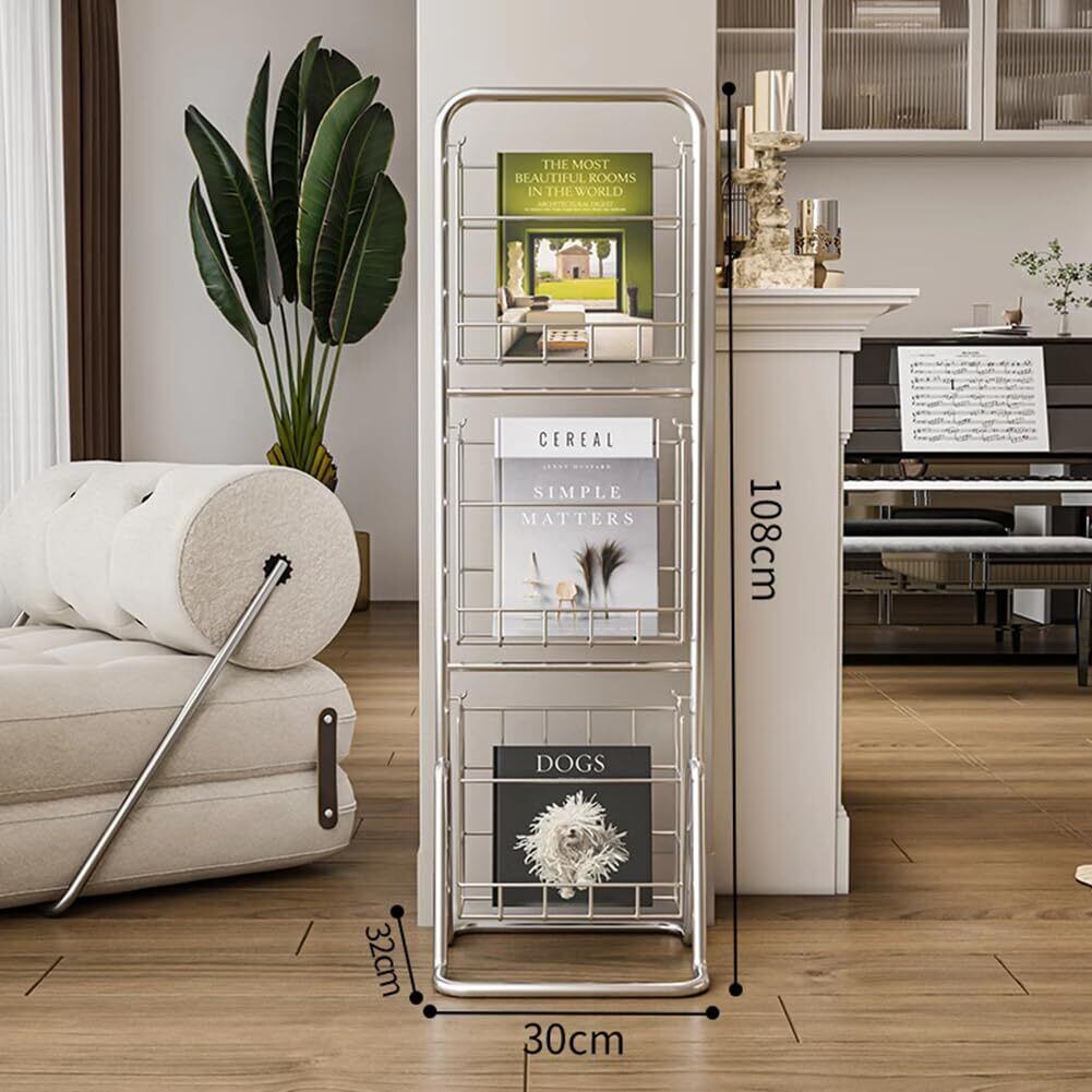 マガジンラック スリム アイアン 3段 マガジンスタンド 雑誌ラック 本棚 パンフレットスタンド 新聞ラック 新聞雑誌カタログ収納 マガジンホルダー ショッピングモール 応接室 オフィス 展示会 学校 図書館 病院 リビング 完成品 (シルバー)